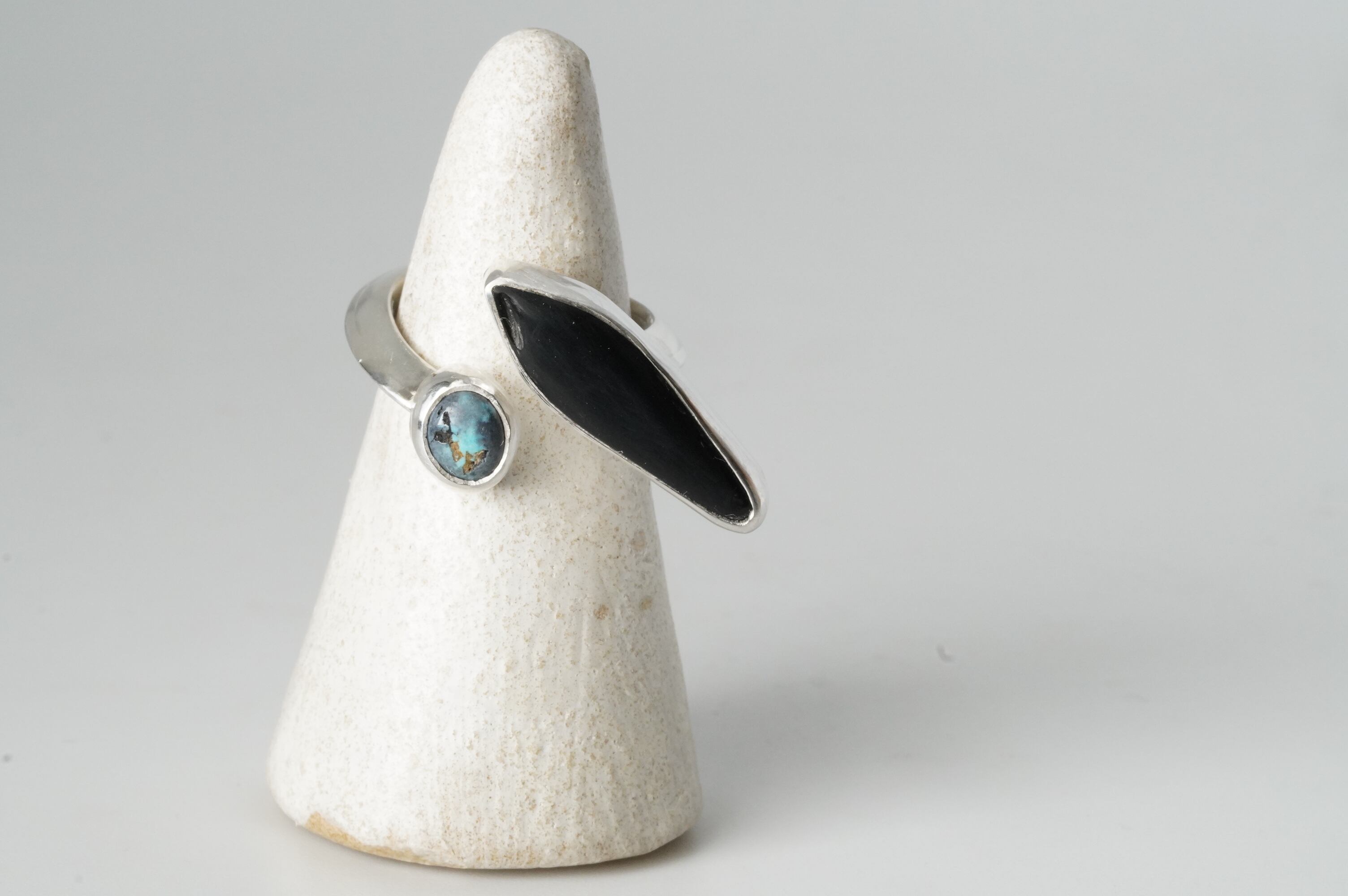 繊細なブラックオニキスをシルバーでしっかりと包み込んだtwistリング。