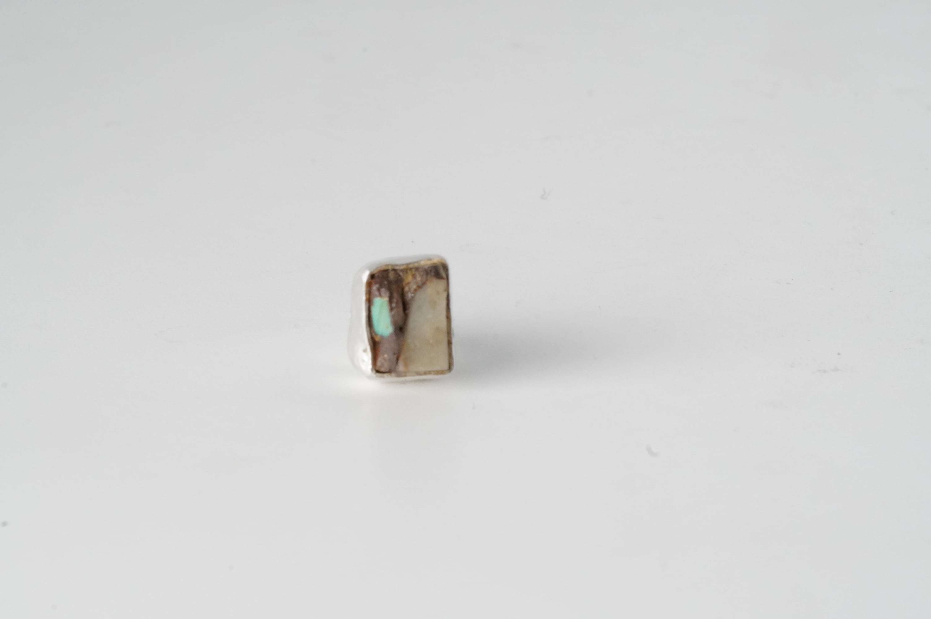 小さな抽象絵画のようなroystonturquoiseのカケラを、補強するために純銀で額縁をつけました。