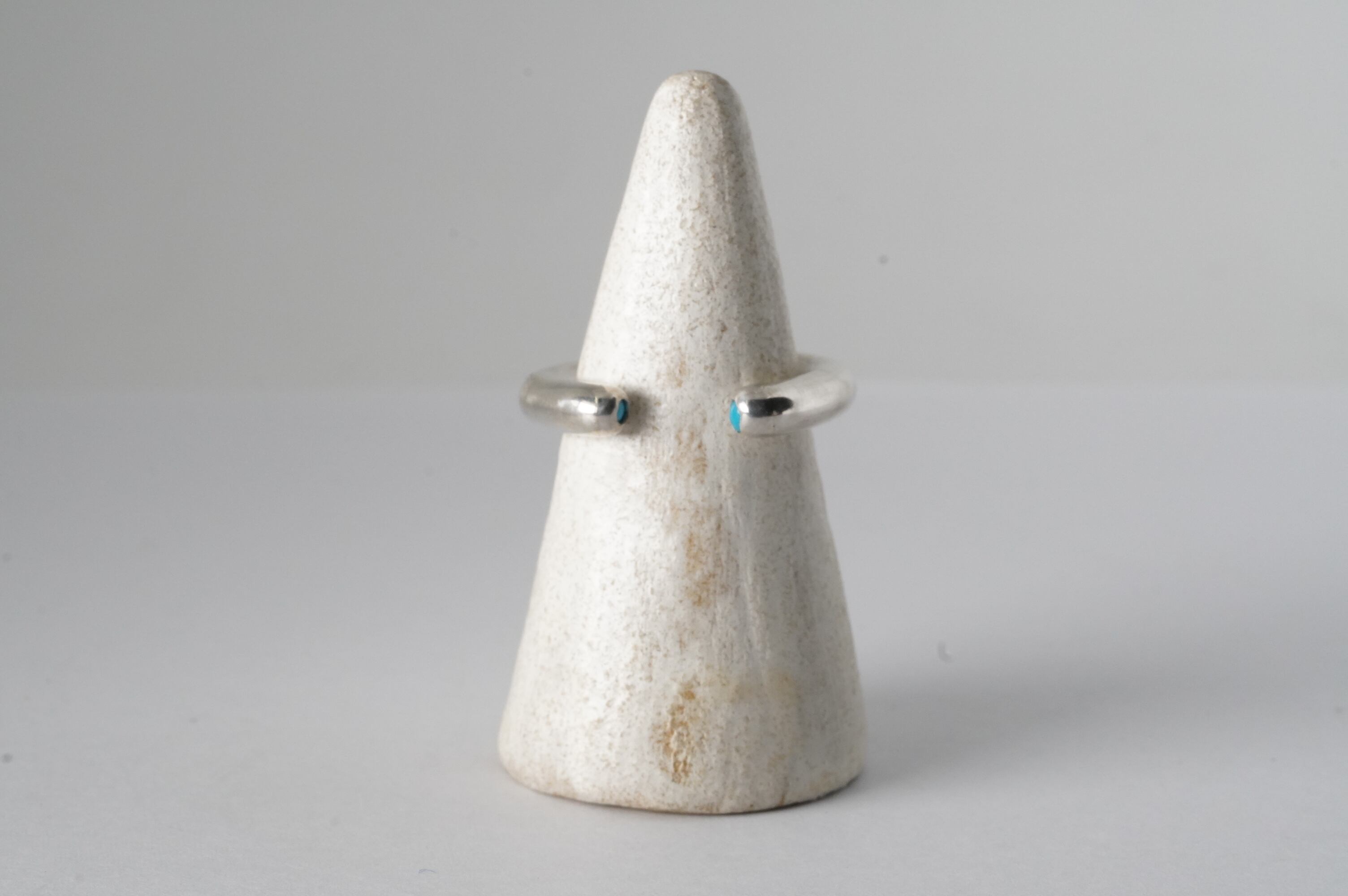 4mm幅のシルバー幅にもすっぽりおさまるターコイズを、お互いが向き合うようにつけました。