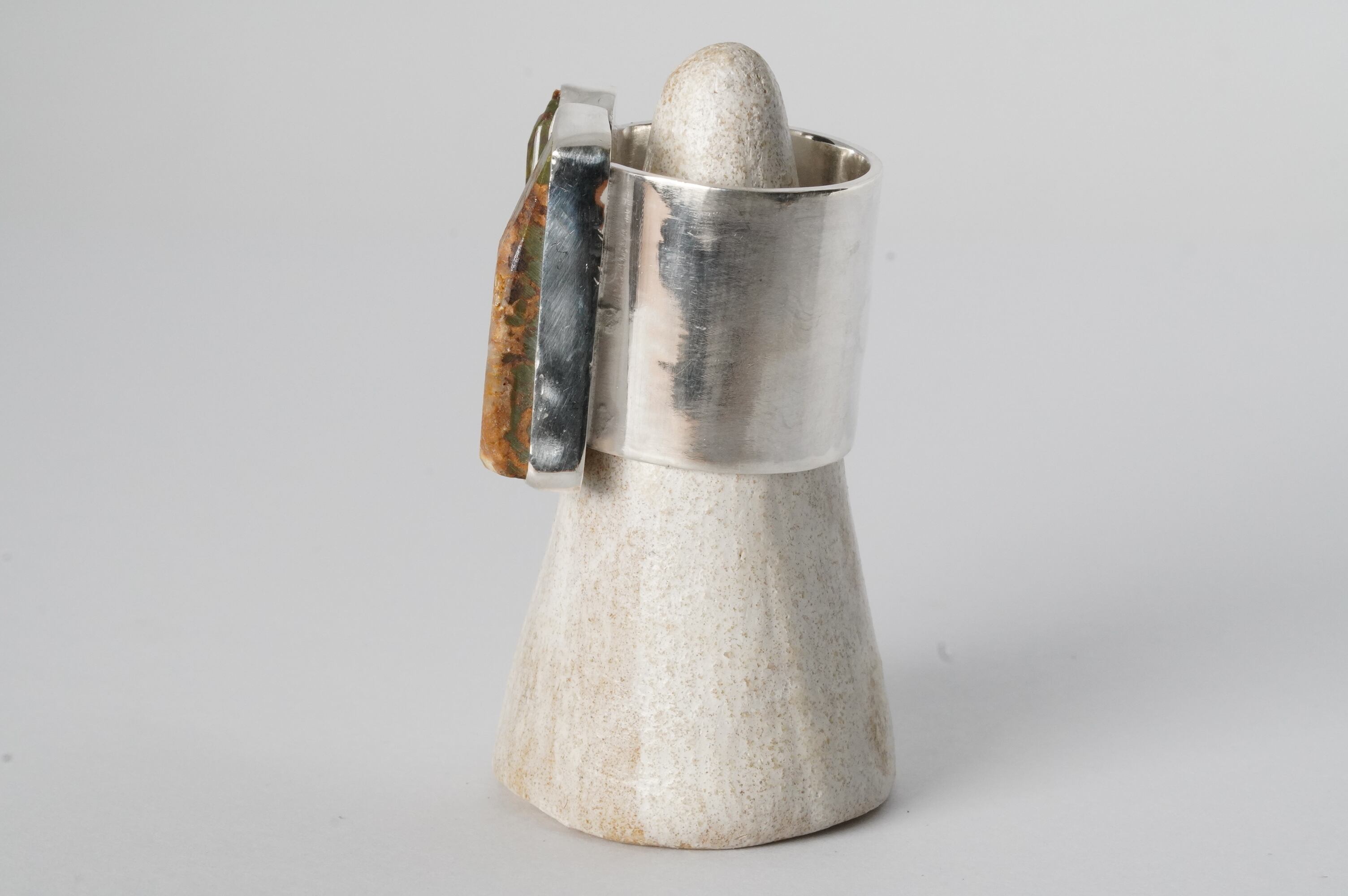 幅広で厚みのあるシルバーを贅沢の使い、決してキラキラと主張がない渋さが魅力の天然石を彩ます。