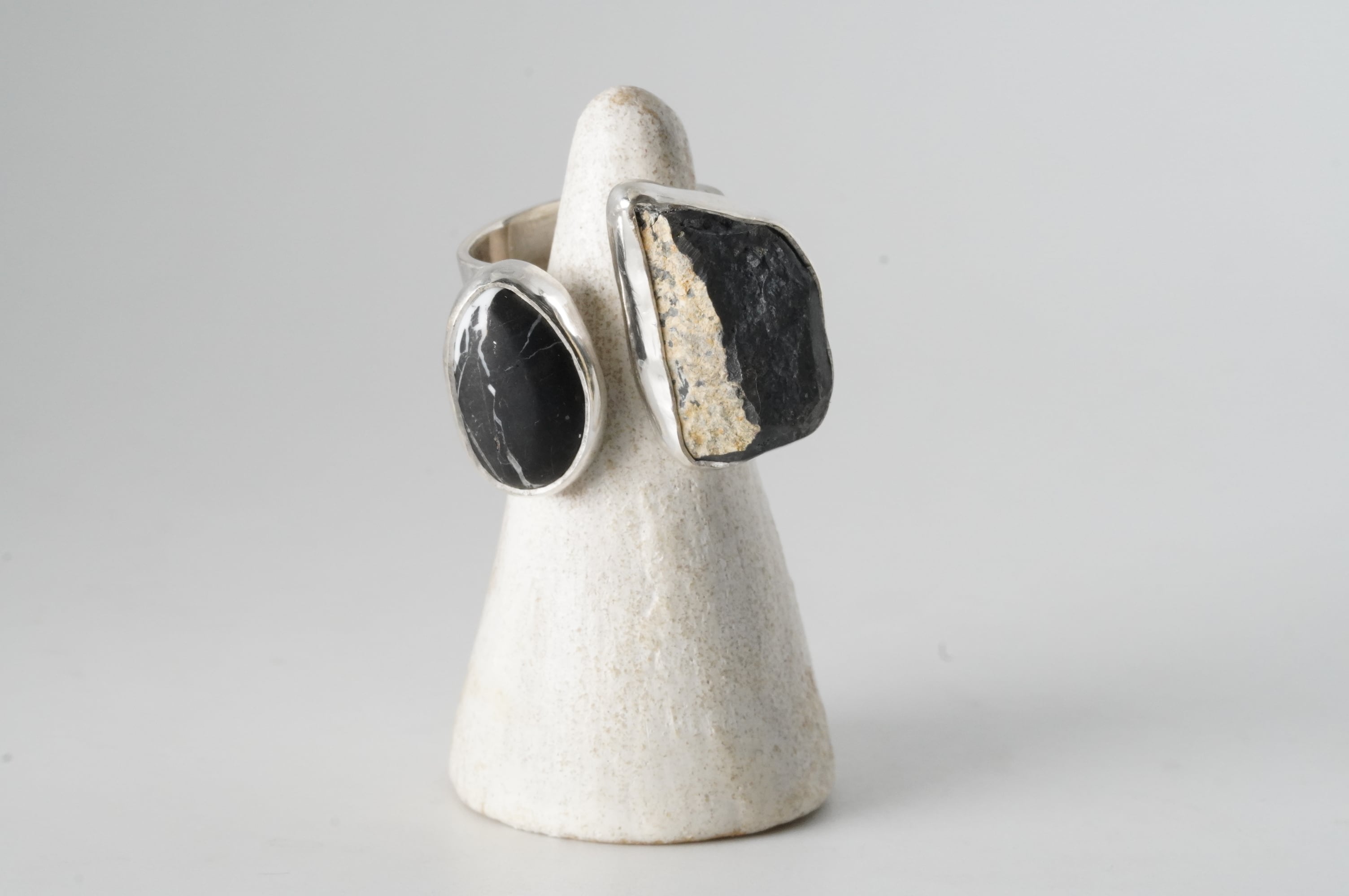 white buffaloの原石とルースを組み合わせた少し幅広のtsugai ring。