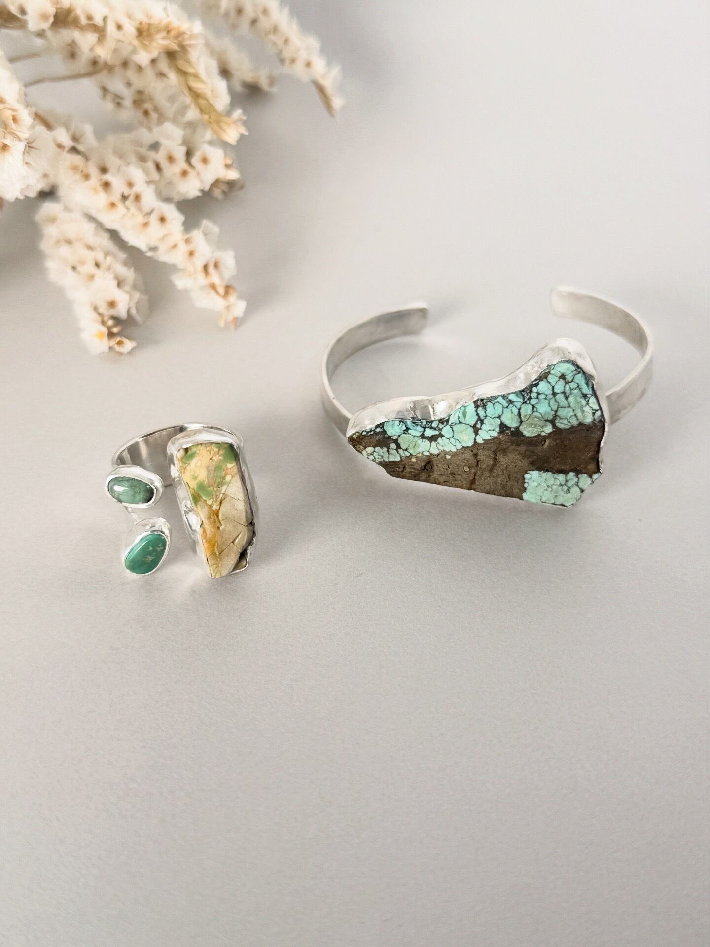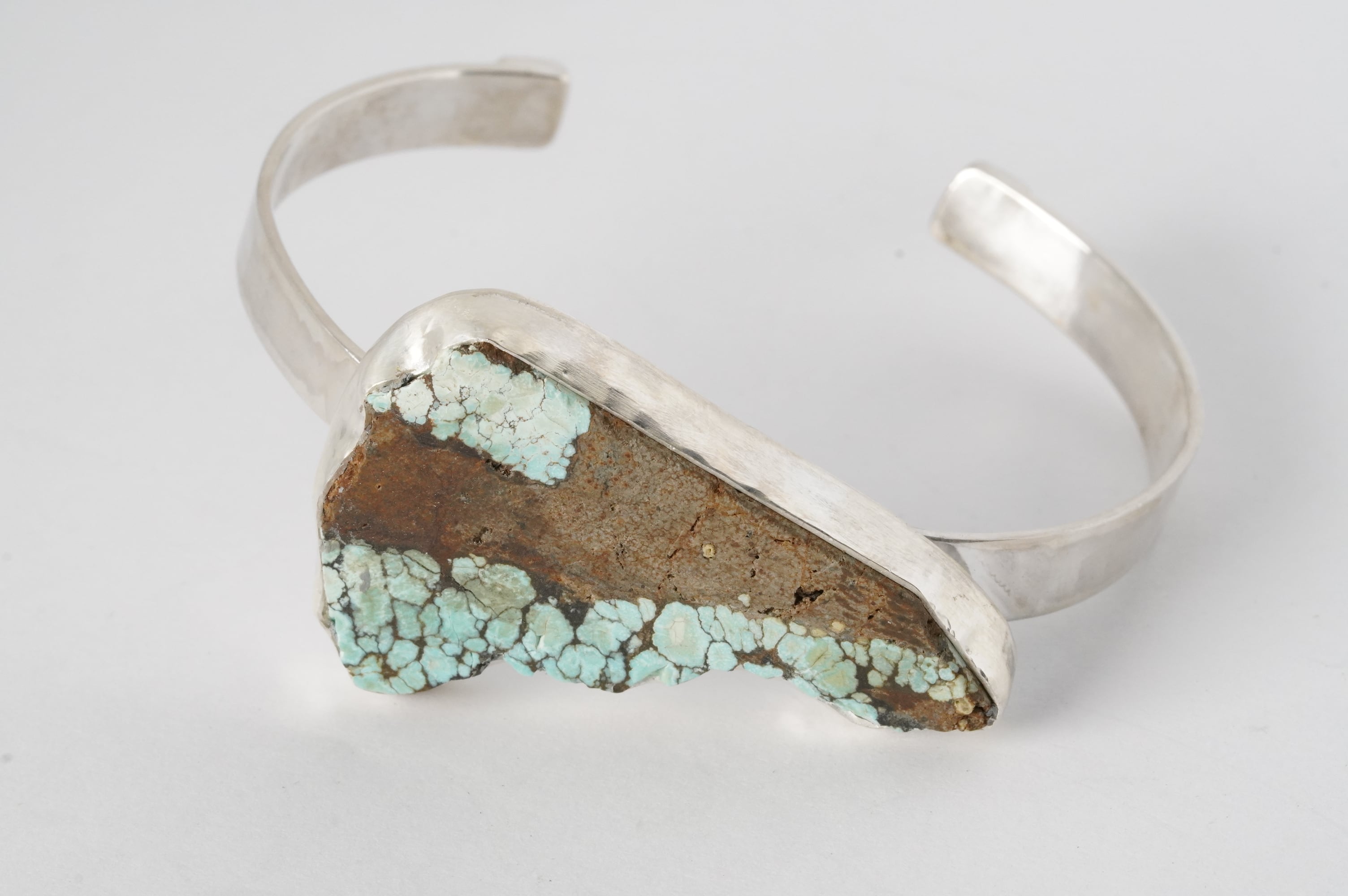 No,8の原石のプレートを一部切り取り、やや幾何学的な模様を活かすため同じ幅のシルバーでバングルにしました。