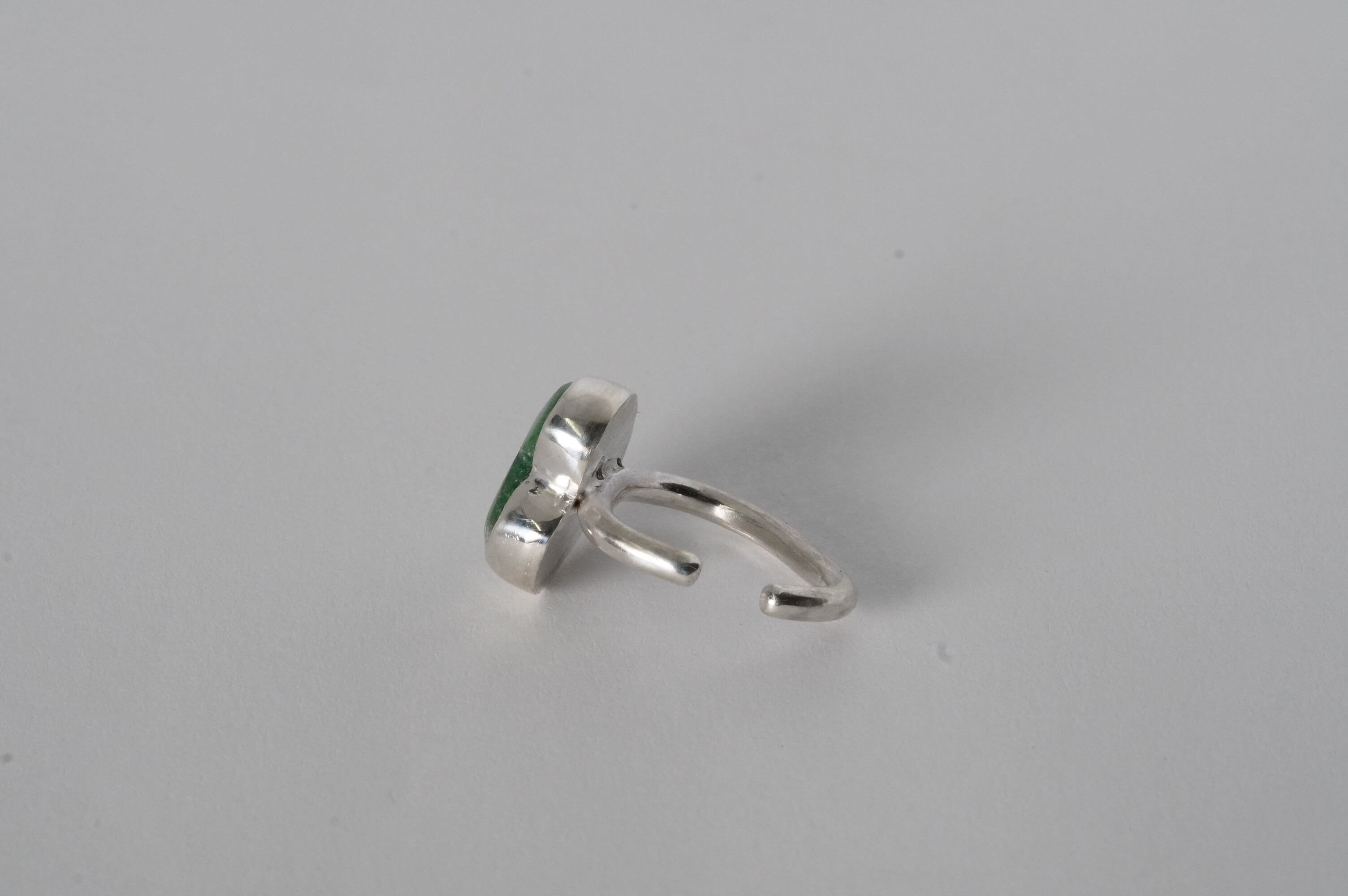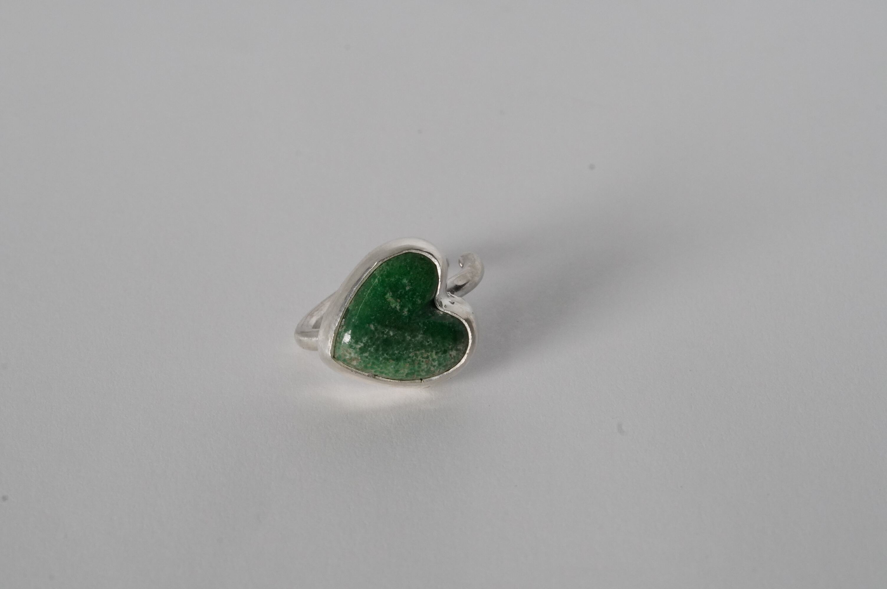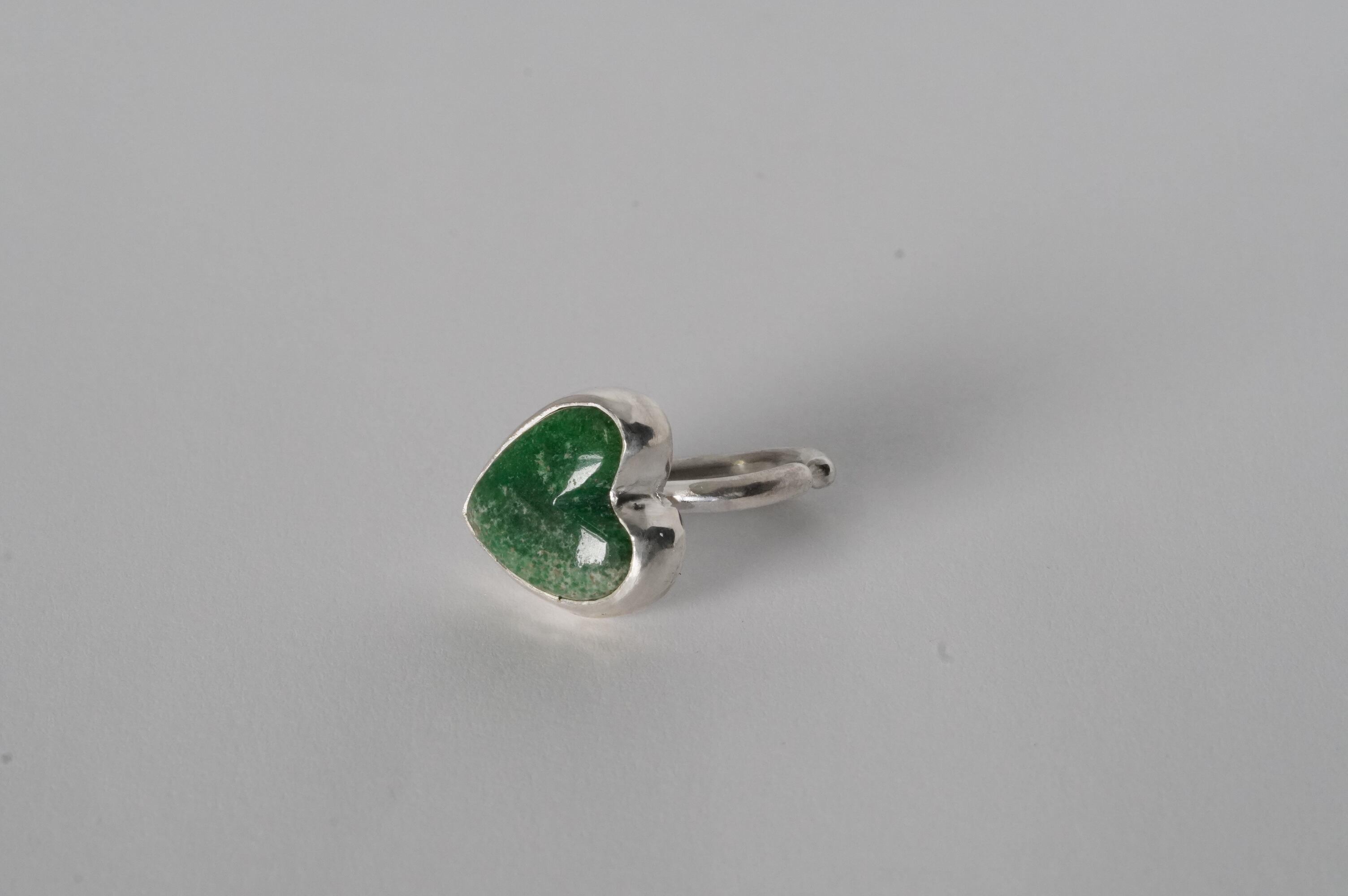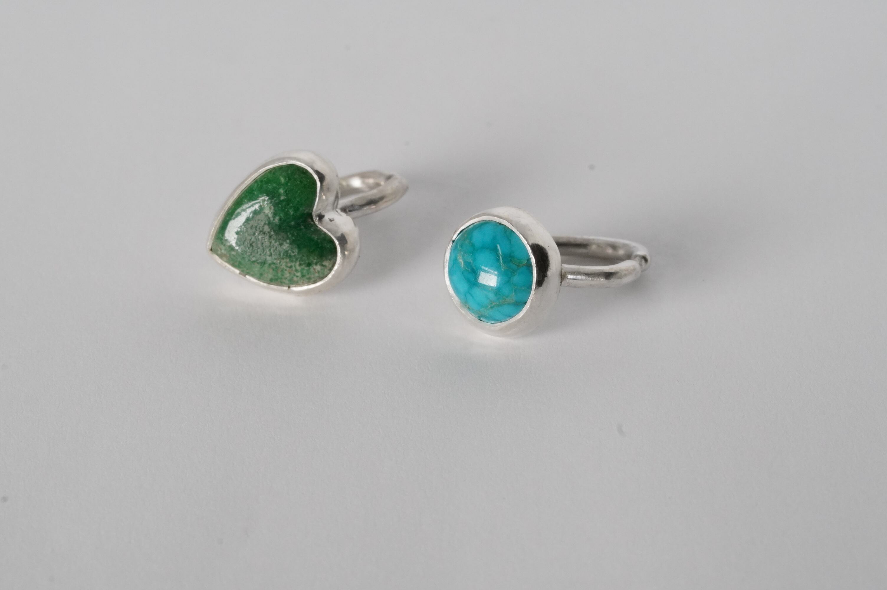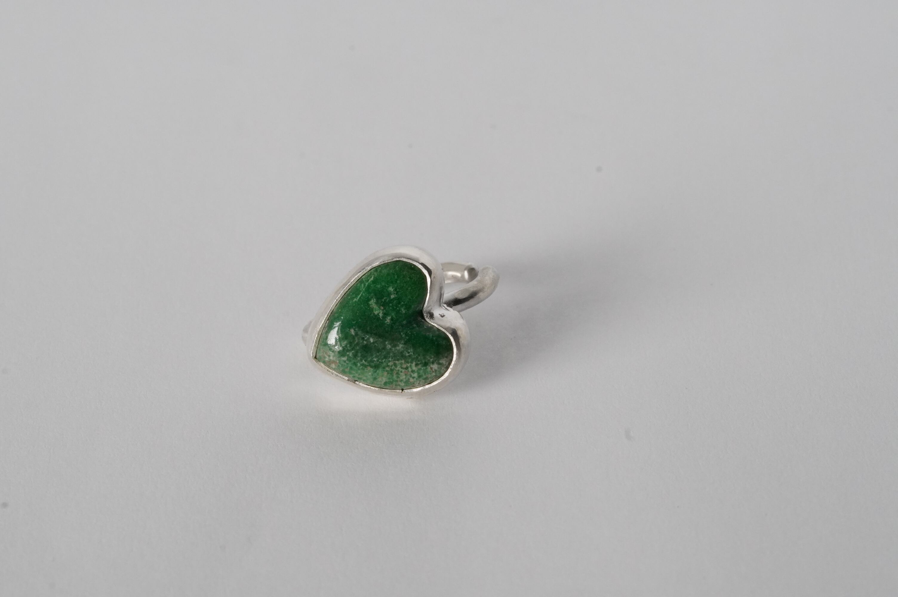 ハート型に形成されたRoystonらしいグリーンのルースをイヤカフにしました。 渋いグリーンなので大人でも使いやすい甘すぎないハート型のイヤカフです。 ピンキーにもなり2wayでお使いいただけます。