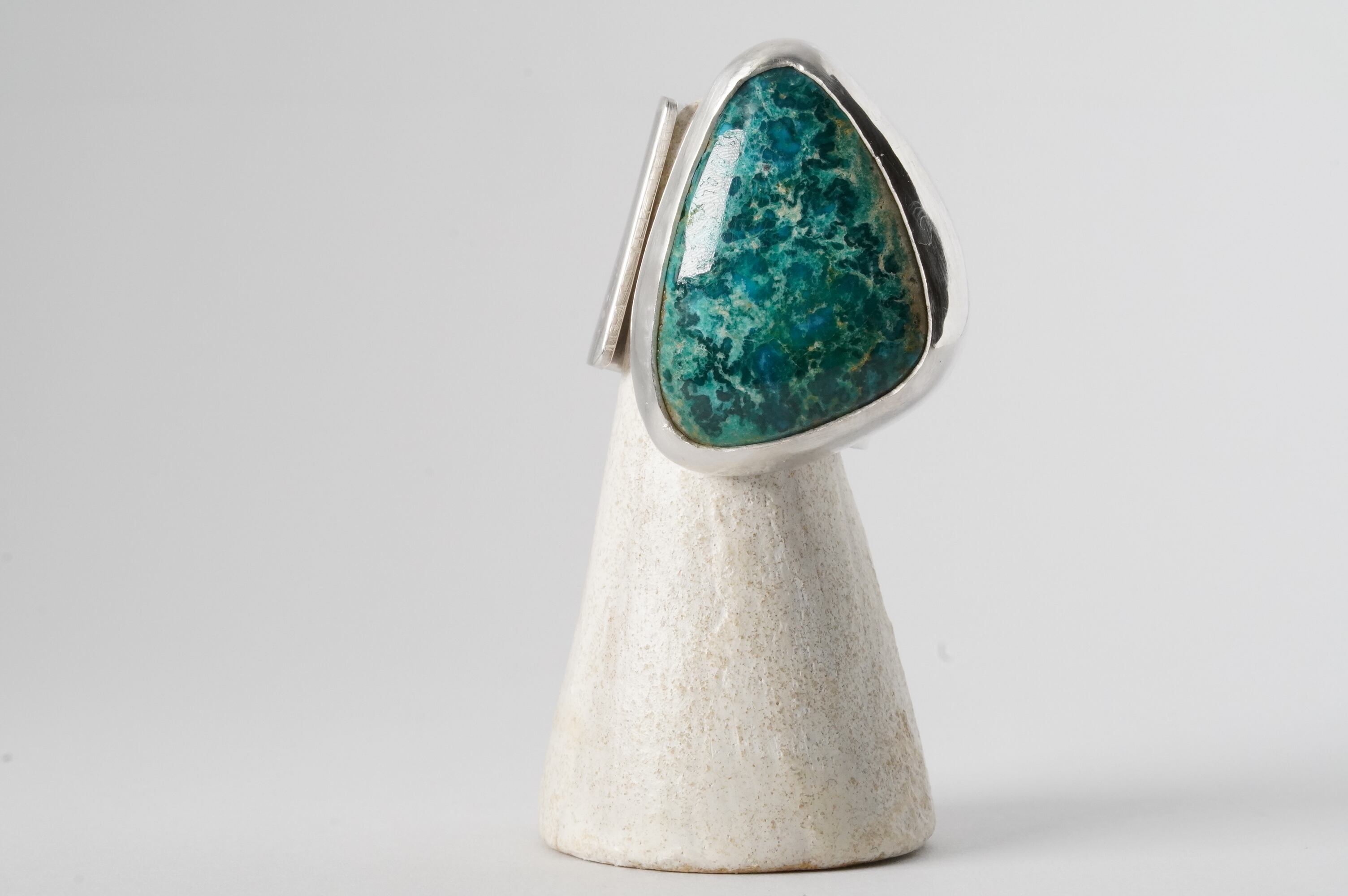 水色と緑のグラデーションが美しく、まるで若葉を散りばめたようなターコイズ。 Silver 925 幅20mm 純銀