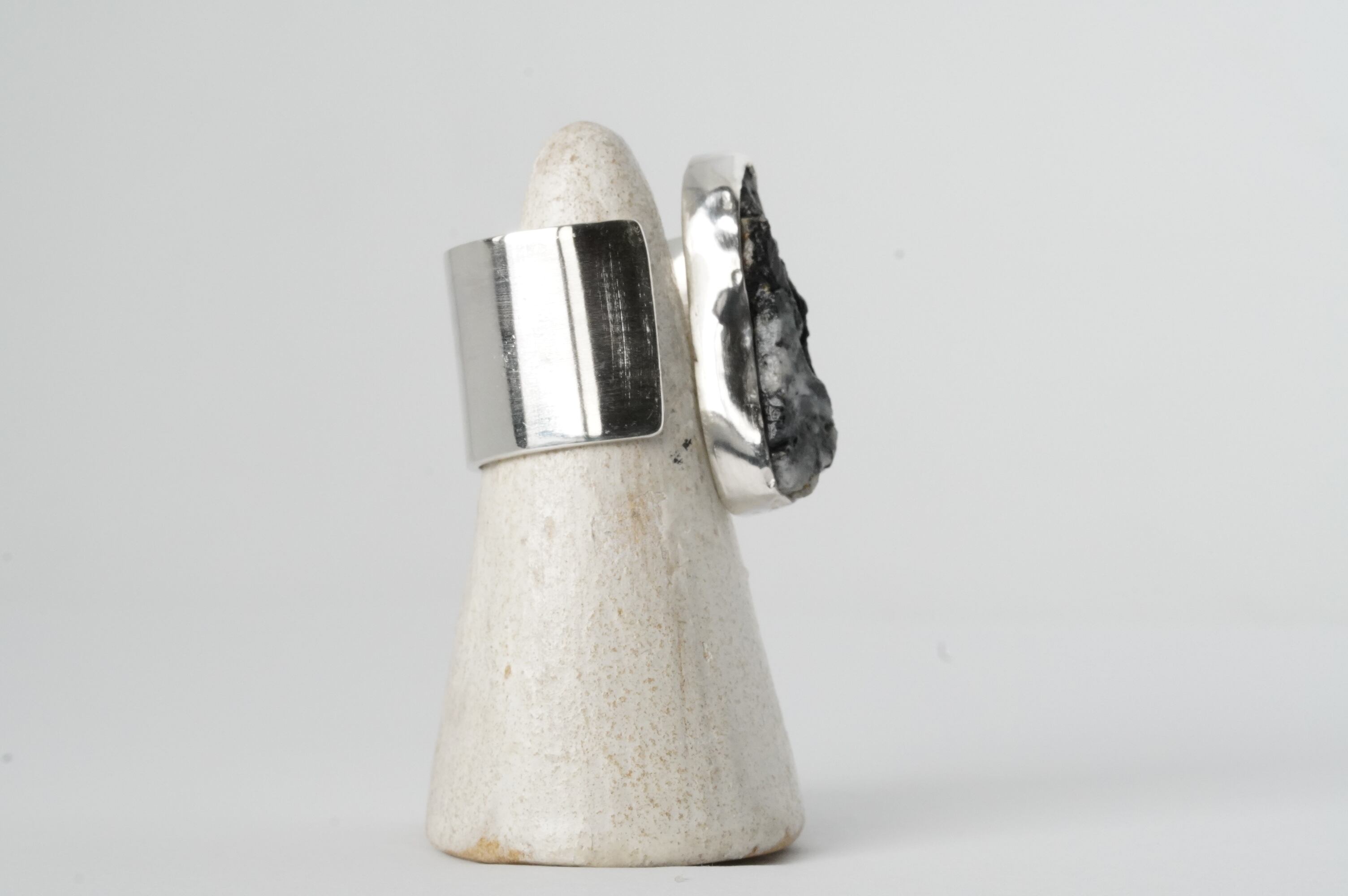 艶のある黒にグレーやホワイトがマーブルにように複雑に絡み合う美しい蕾の形。 石の表情をそのままリングにしました。 white buffalo Silver 925 純銀
