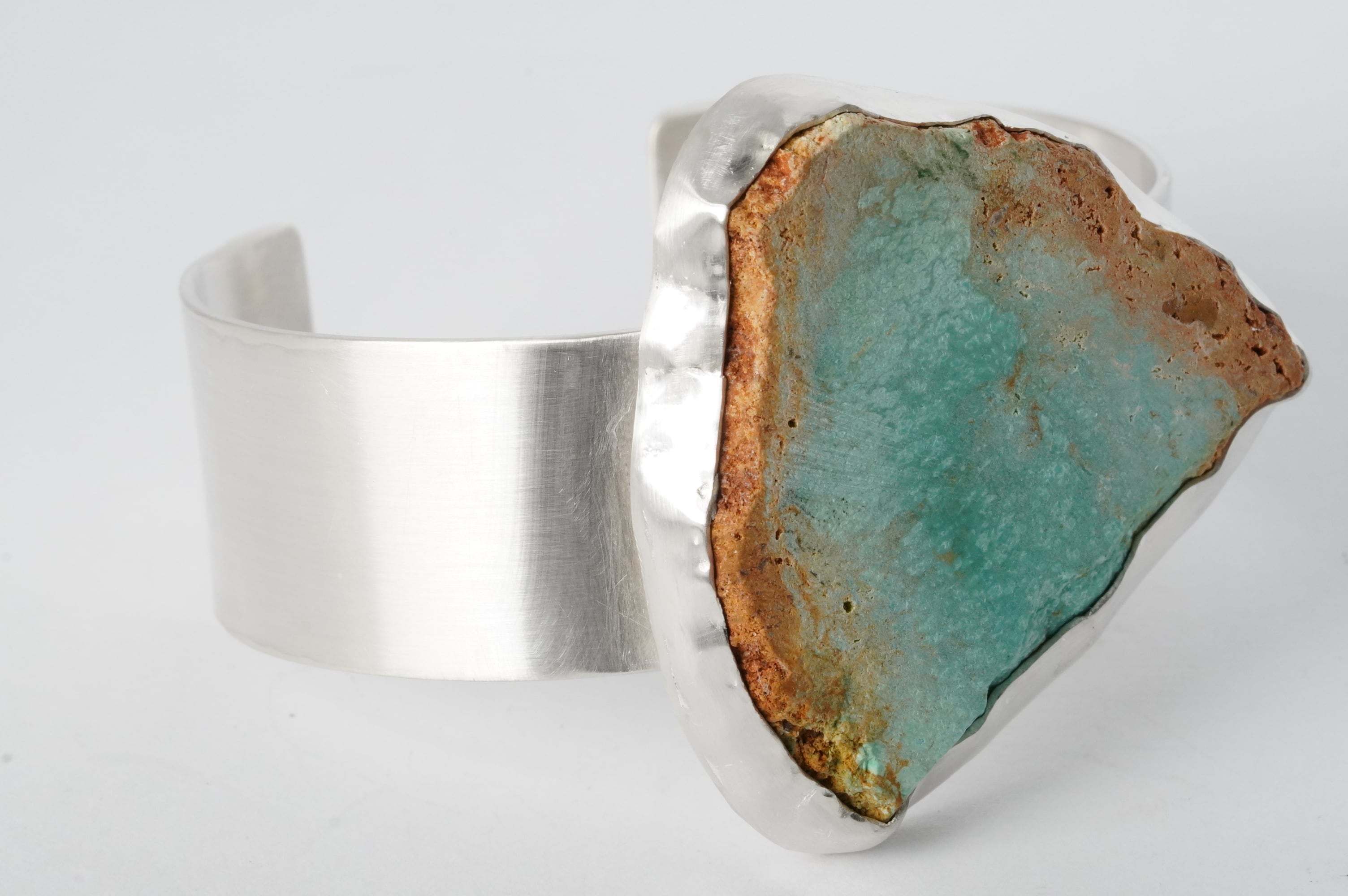 砂浜に美しい波が静かに押し寄せては引いていく。 石に耳を澄ませが、静かな波の音が聴こえてきそう。 Roystonの大きな原石をそのまま大きなバングルにしました。