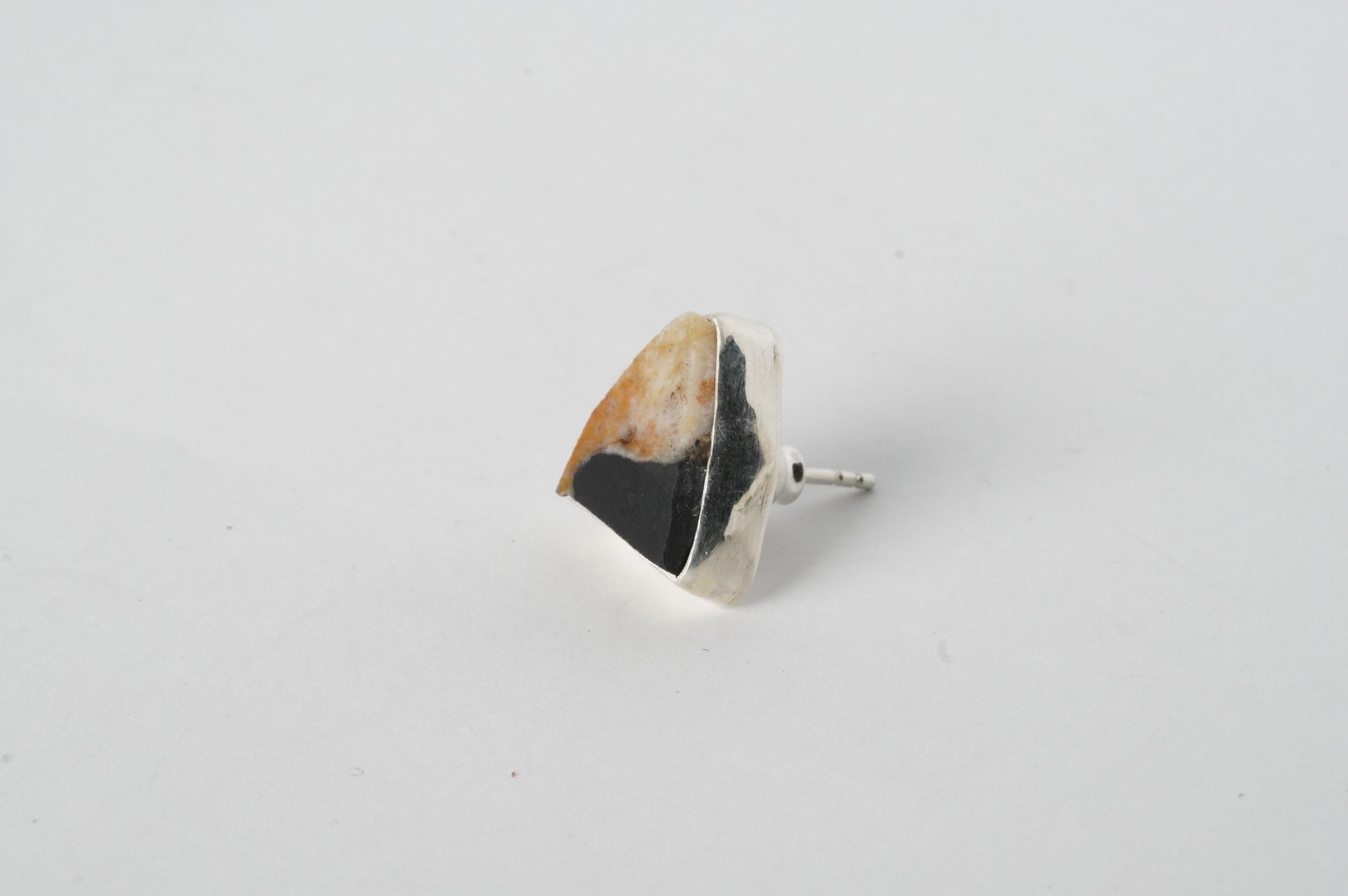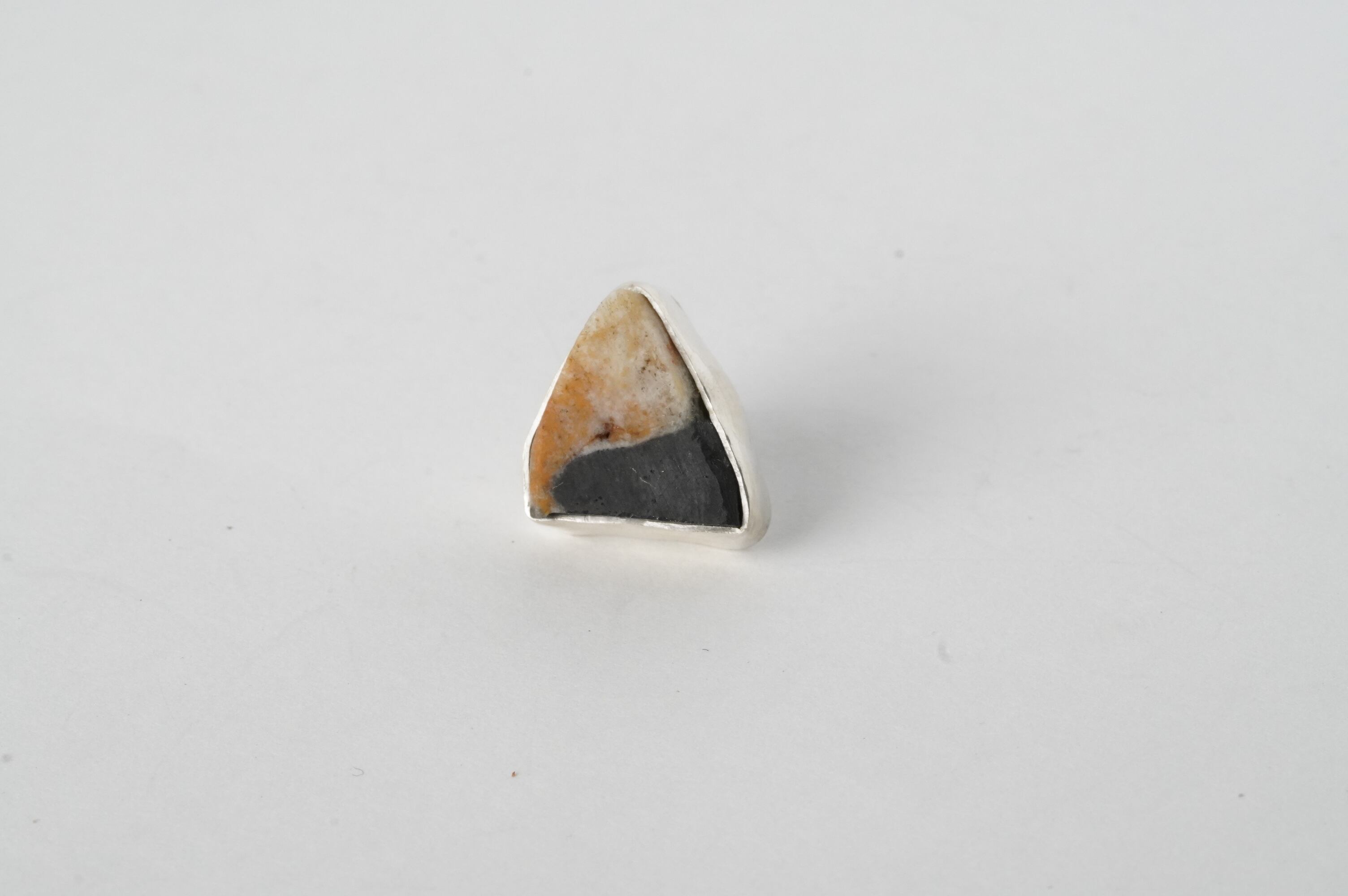 ホワイトバッファローの原石のかけら、ベージュとブラックのバイカラー。 形成したわけではなく偶然できた三角形だからこそ、自然な愛らしさがあります。