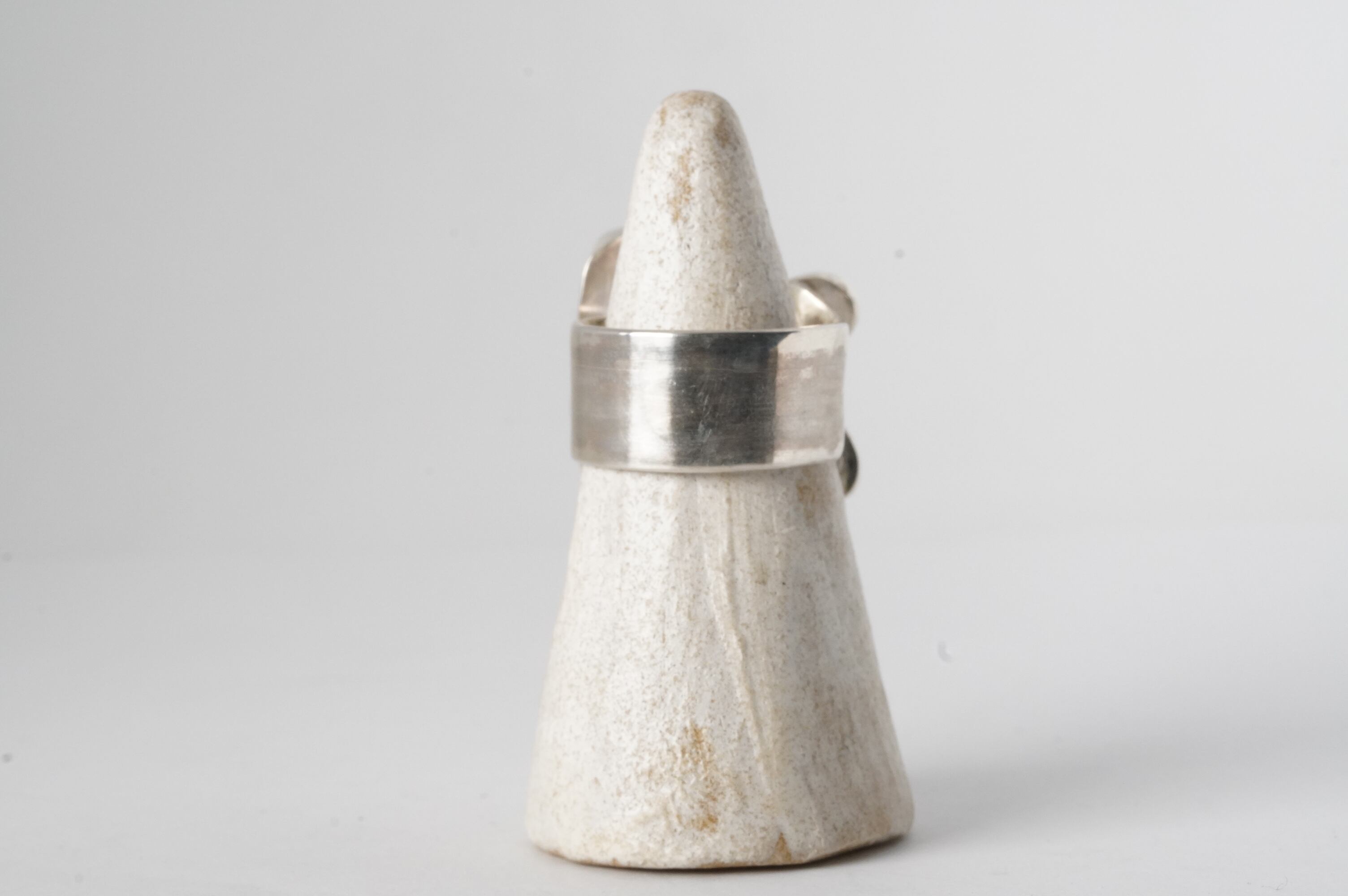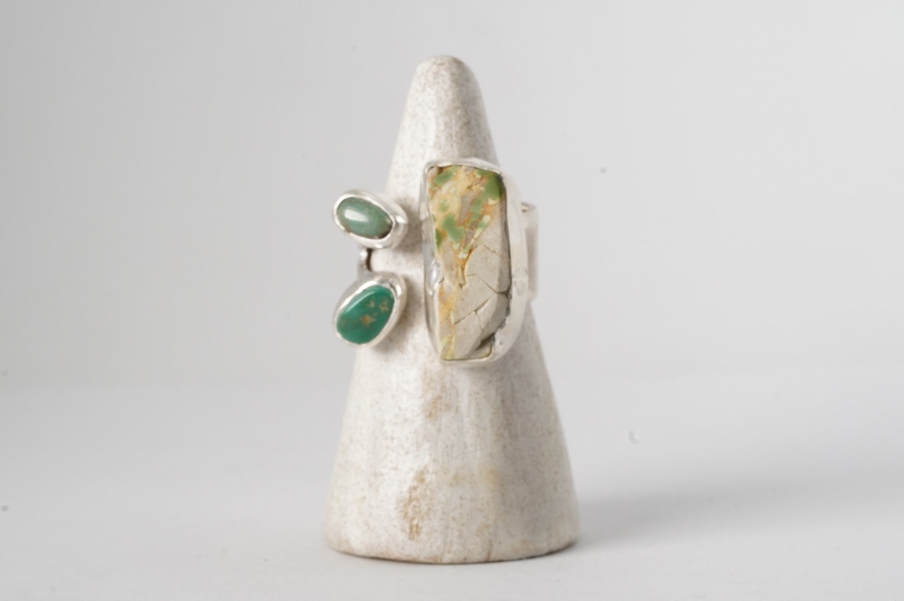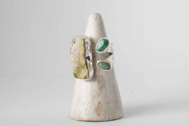 白に近いベージュの原石。中に輝く緑を輝かせるため、2枚の葉を添えました。