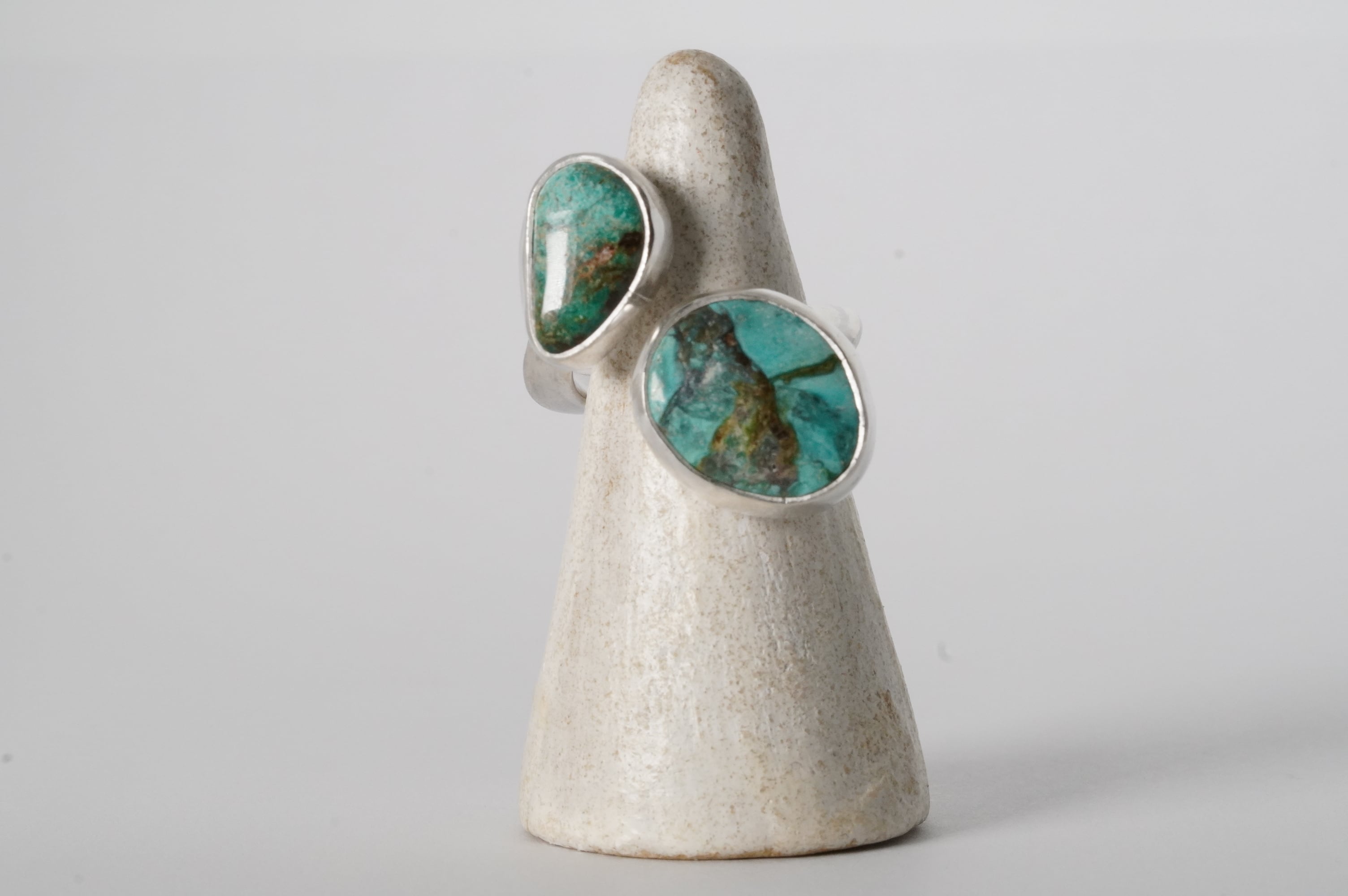 見え方は人それぞれですが、美しく空間を舞うイメージを連想させる石を合わせてTwist ringにしました。