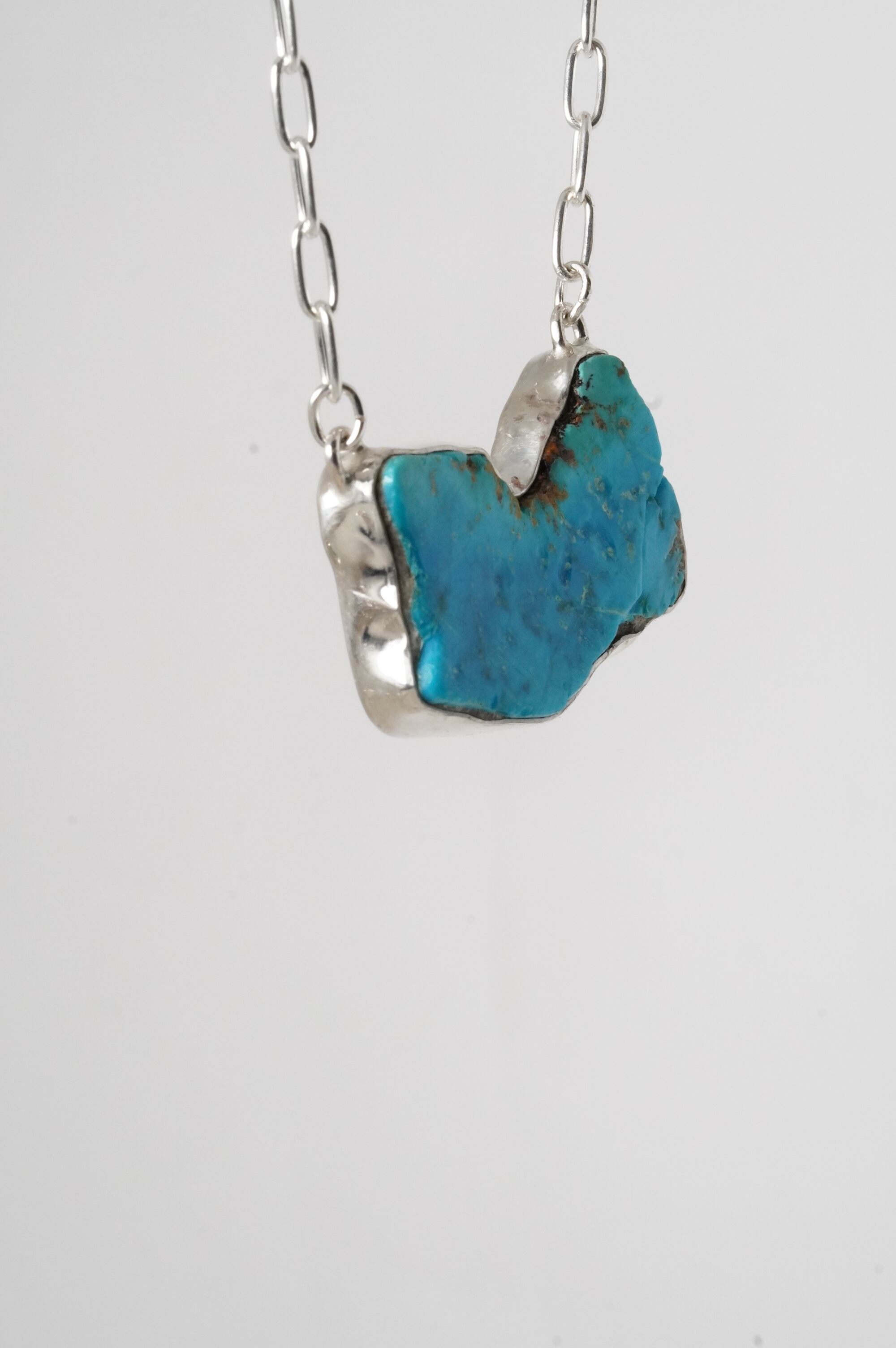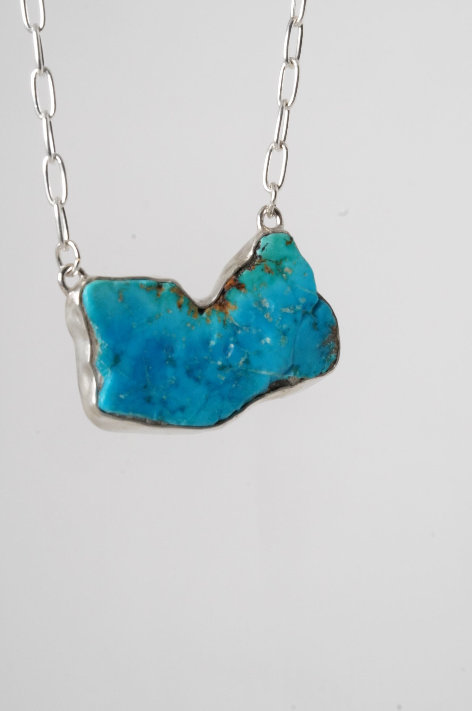 ターコイズの蝶ネクタイのような形のペンダントトップ。