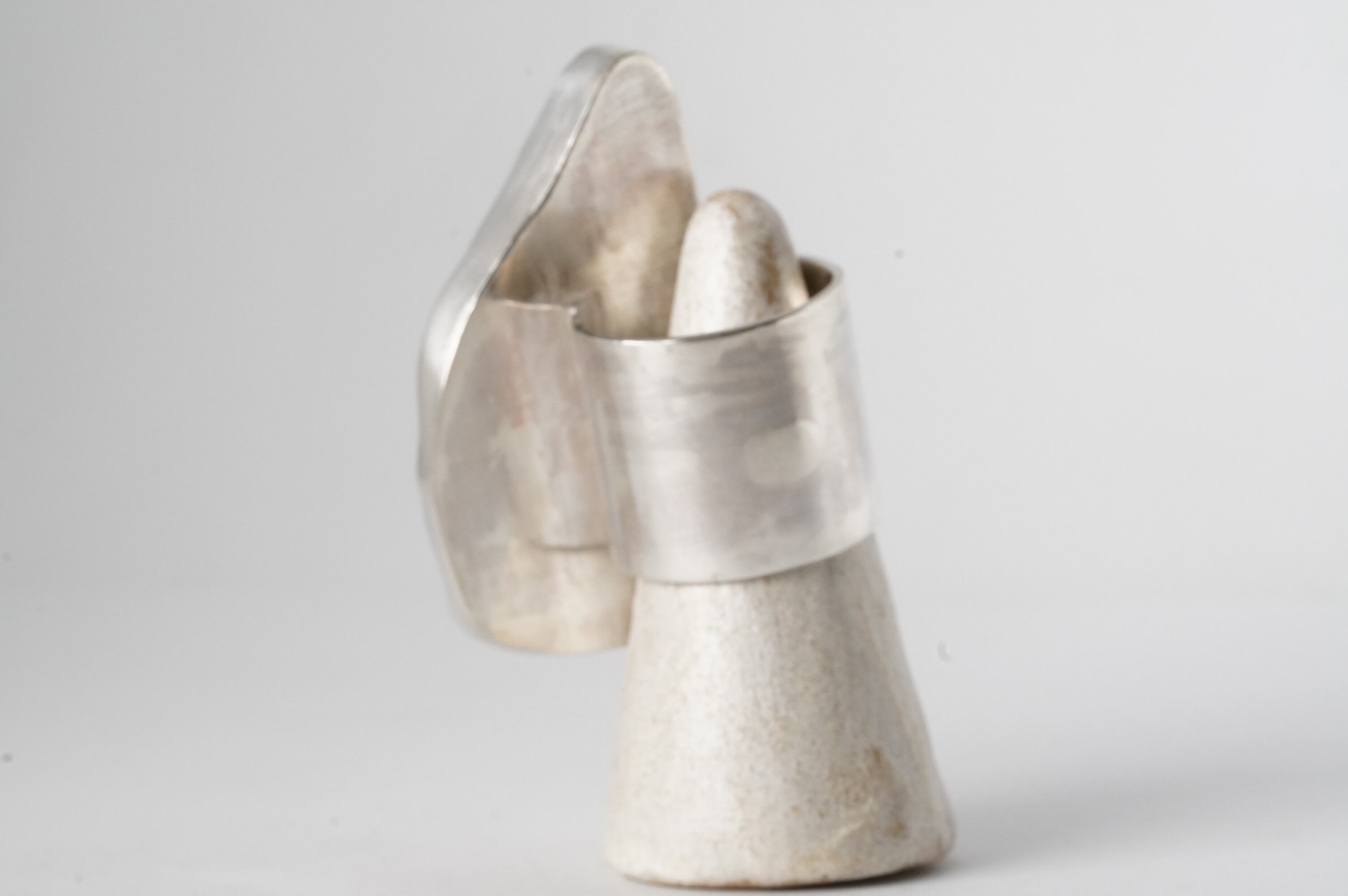 スライスすれば、いくつもジュエリーが作れる大きさの原石を、敢えて巨大な原石そのままに、たった一つのリングにしました。