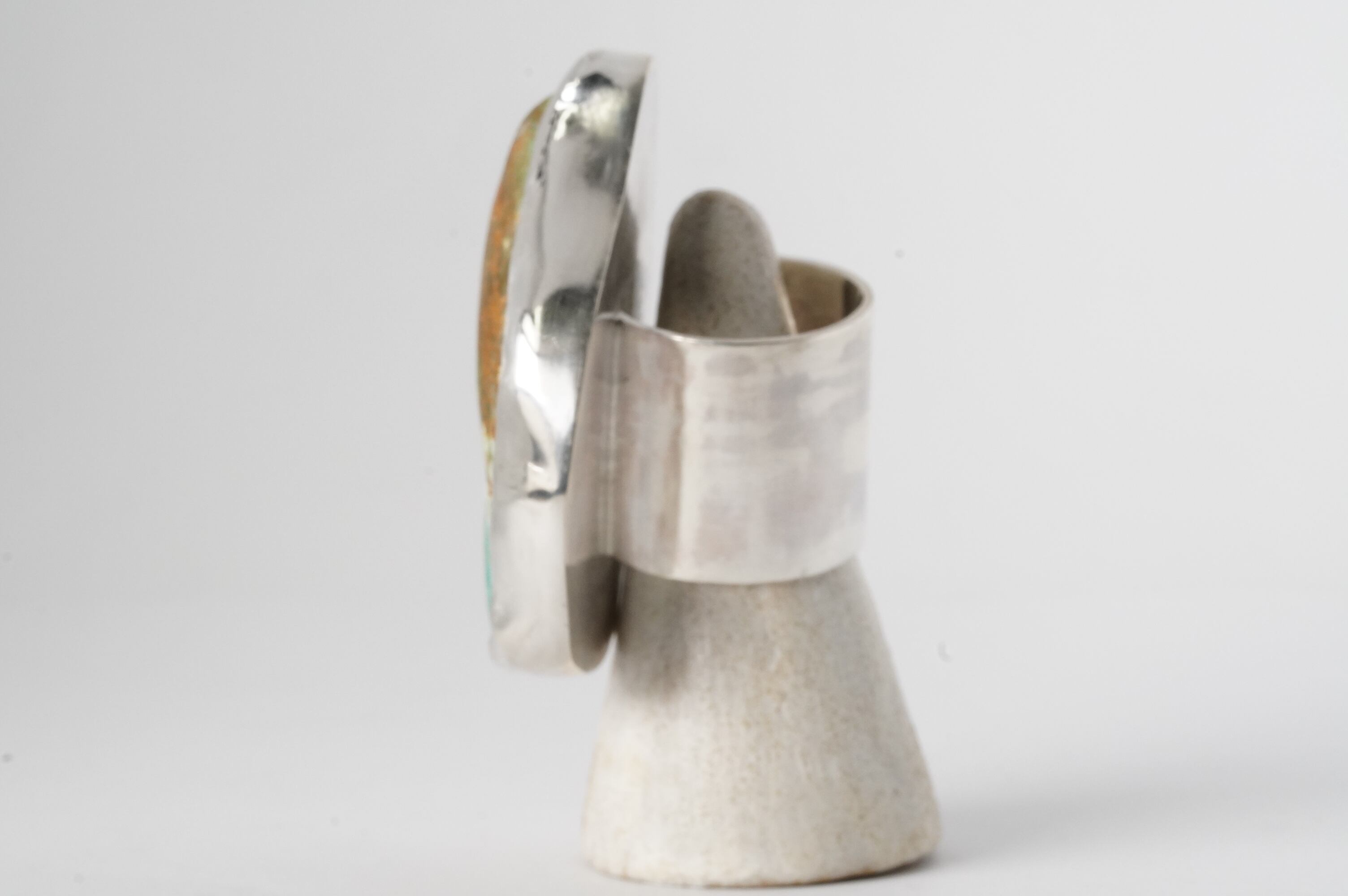 リングスタンドに乗せては画像に収まりきれないほど今までで一番大きなターコイズの原石を使ったリングです。