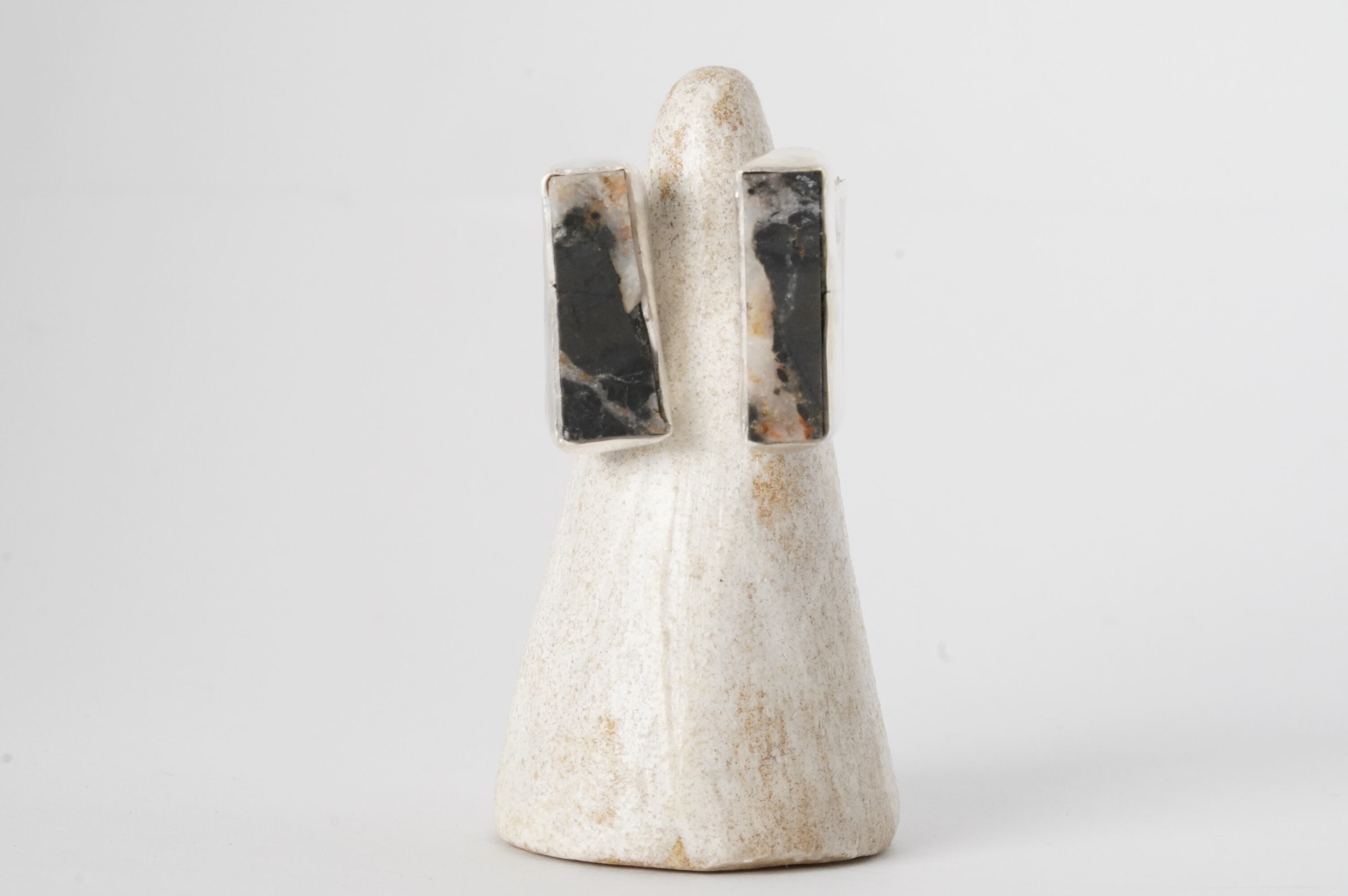 "犬猿の仲”とも言われるほど仲が悪い象徴のような動物たち。 その犬と猿が仲良く向き合ってTsugai Ringとなっています。 ホワイトバッファローの原石にはモノクロ写真のようにさまざまな物語-ストーリー-が隠されています。