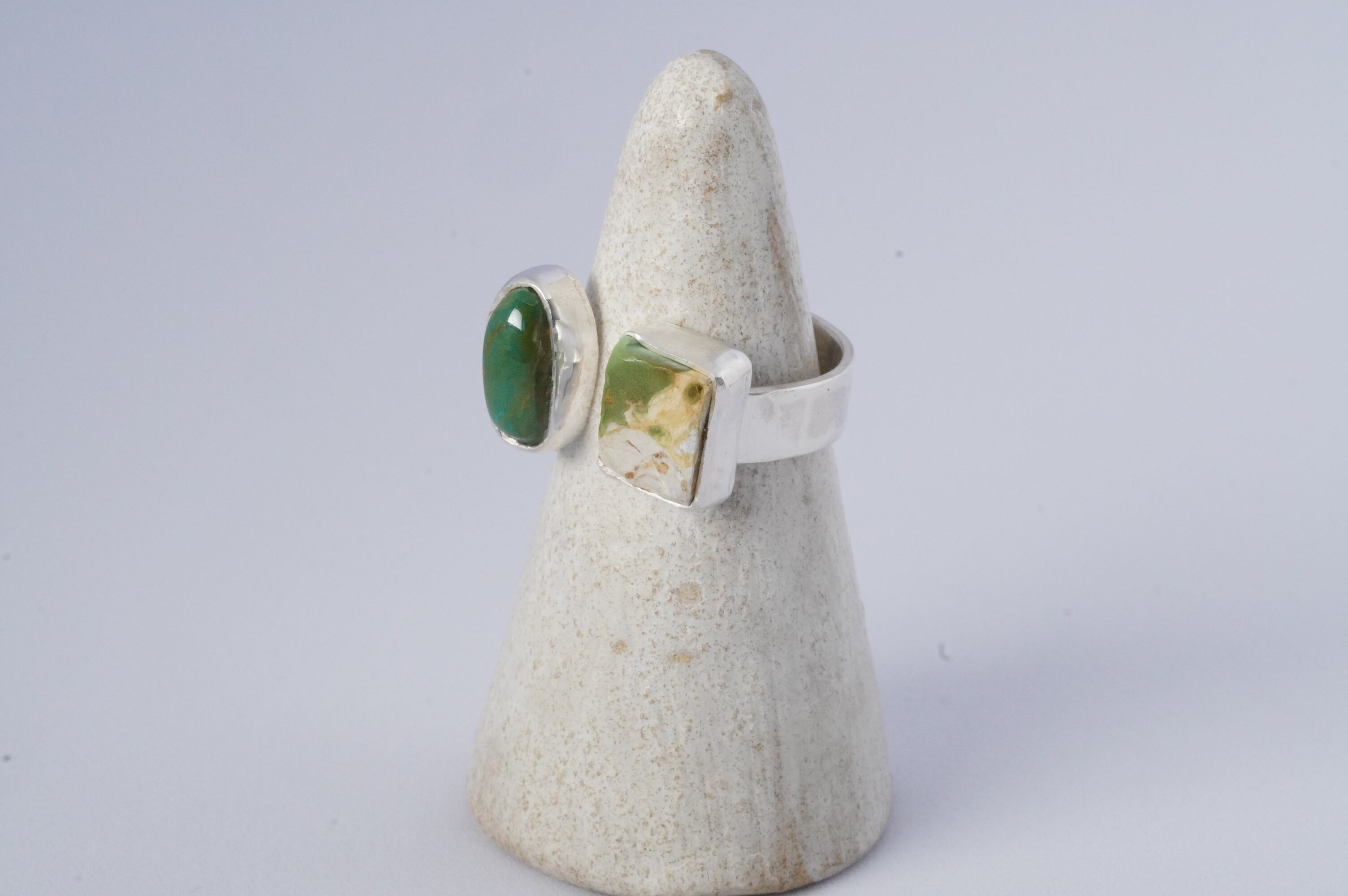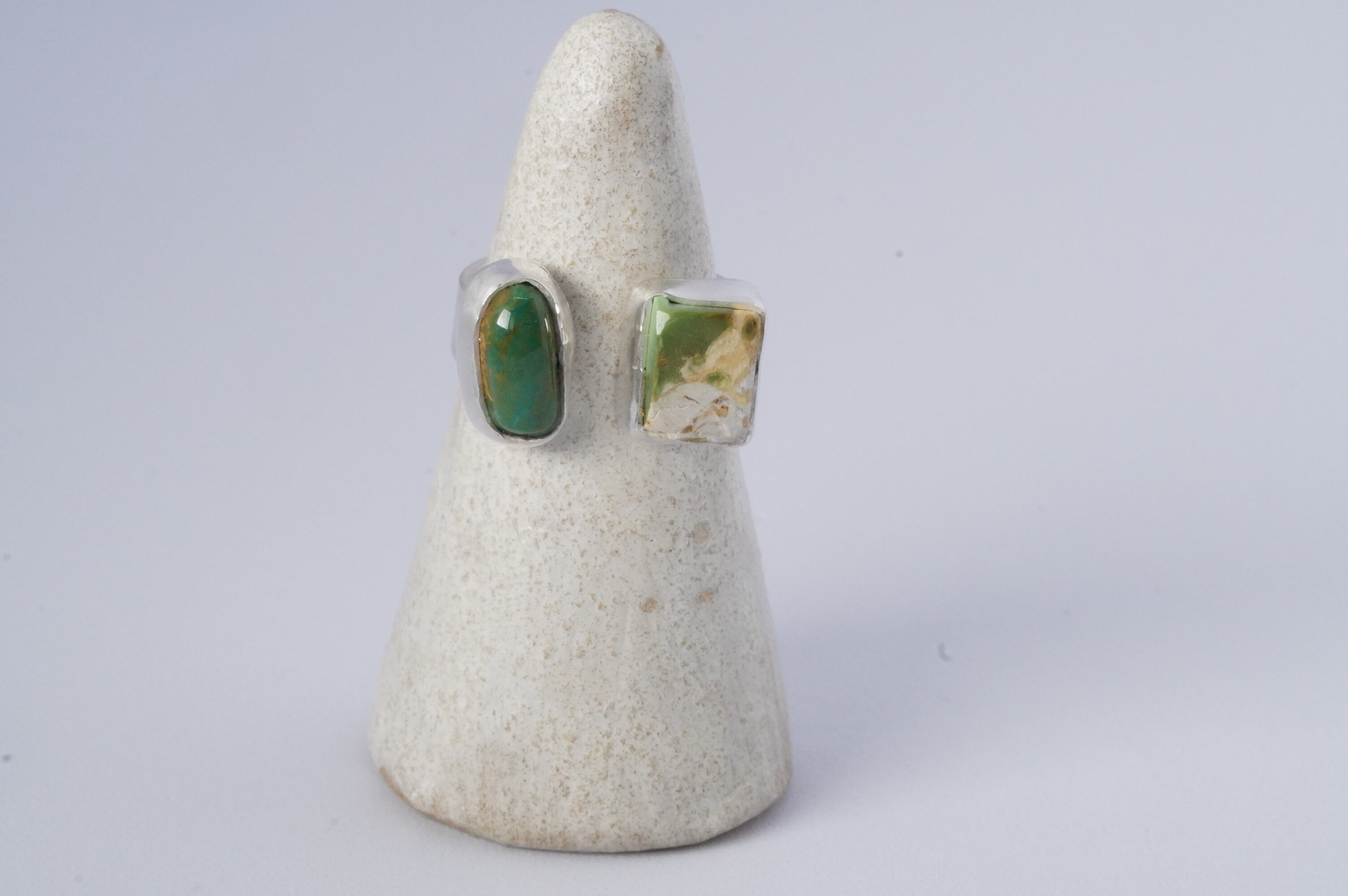 この二つの石を華奢な幅5mmのシルバーで繋ぎTsugai ringにしました。