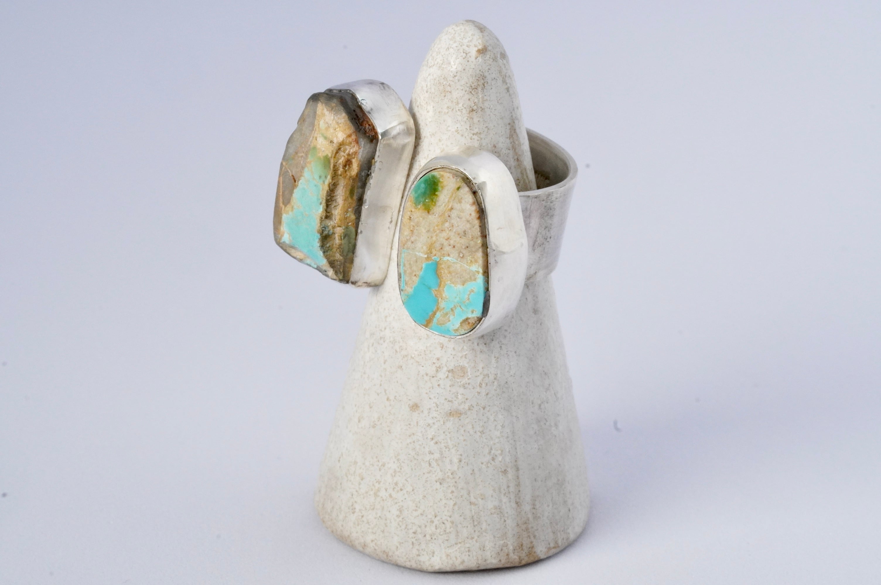 Roystonの原石とルースを組み合わせた少し幅広のTsugai ring。