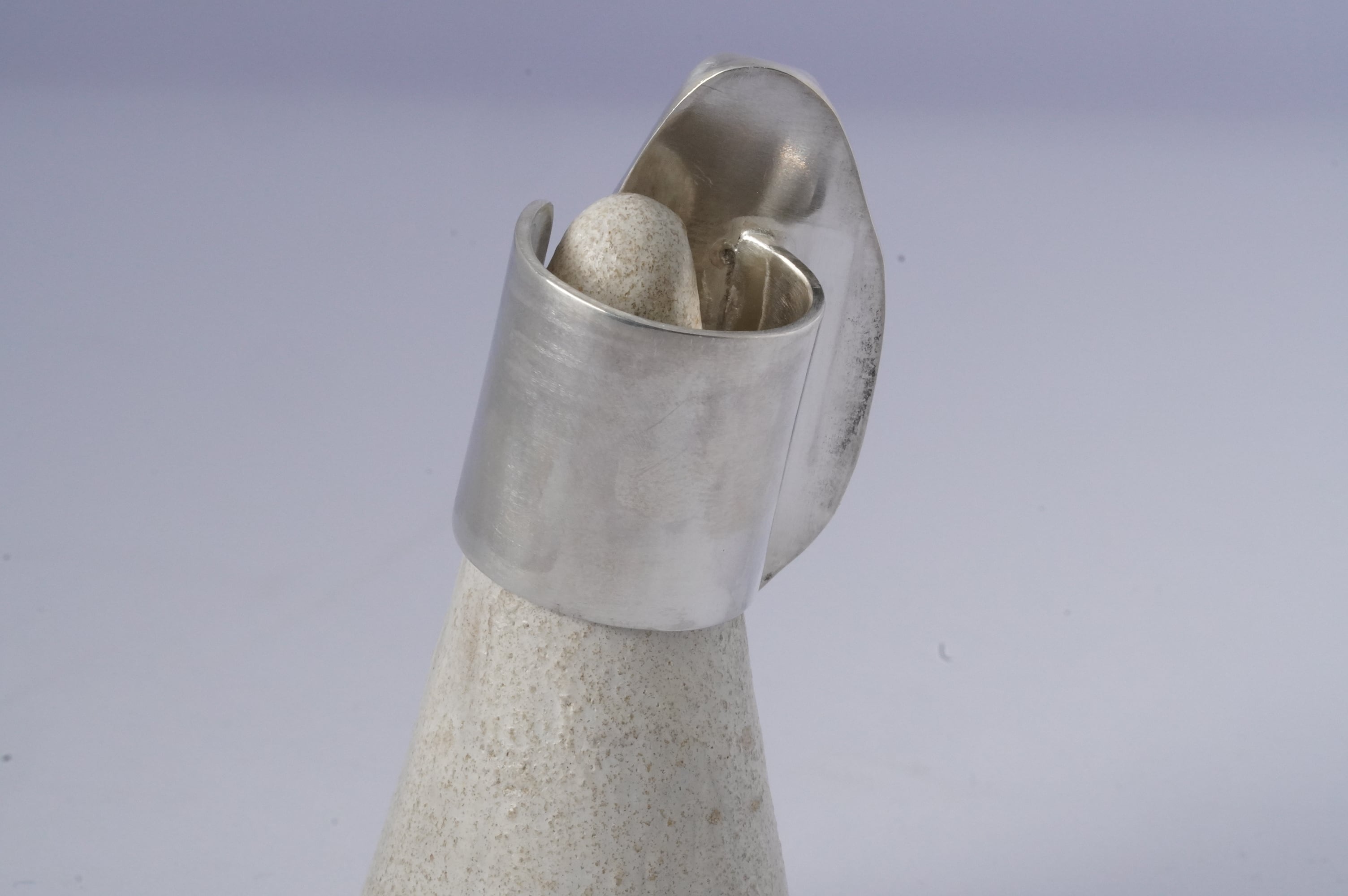 2cmと幅広のシルバーリングの上に、自然のままの大きな原石を大胆に乗せました。
