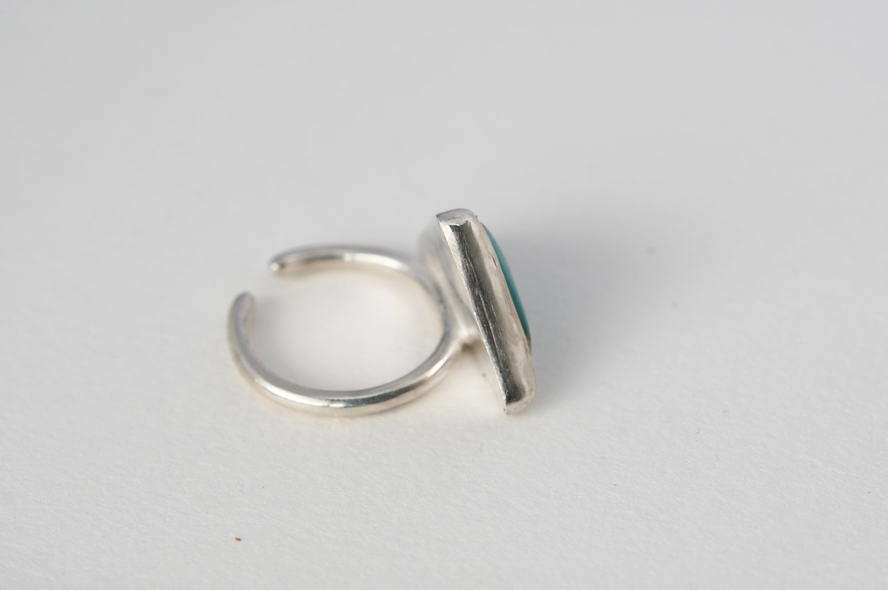 ビビットな濃いブルーグリーンと尖った三角でシャープな印象の中、先端のベージュがアクセントとなり鋭さを和らげるユニークなルース。