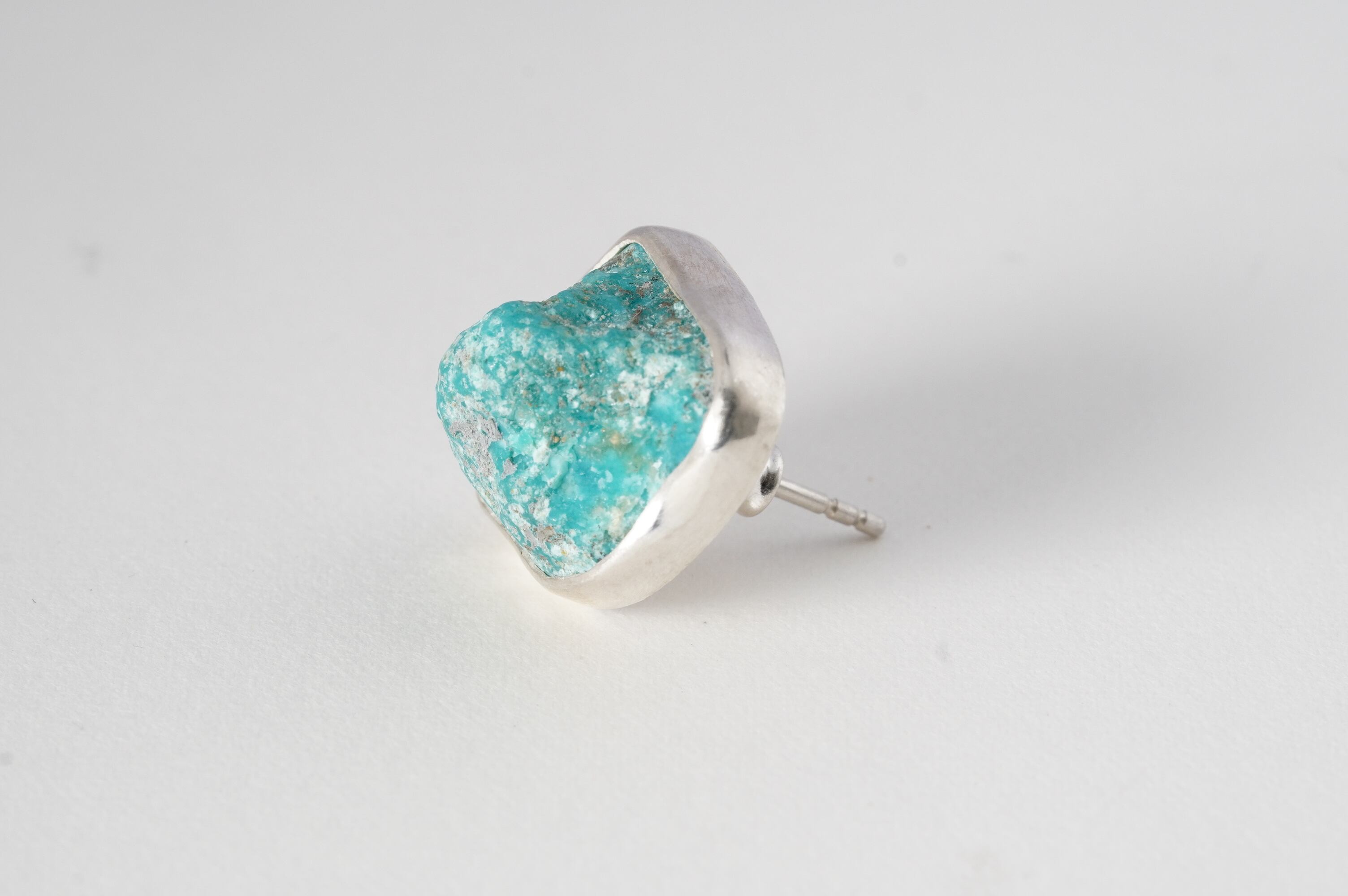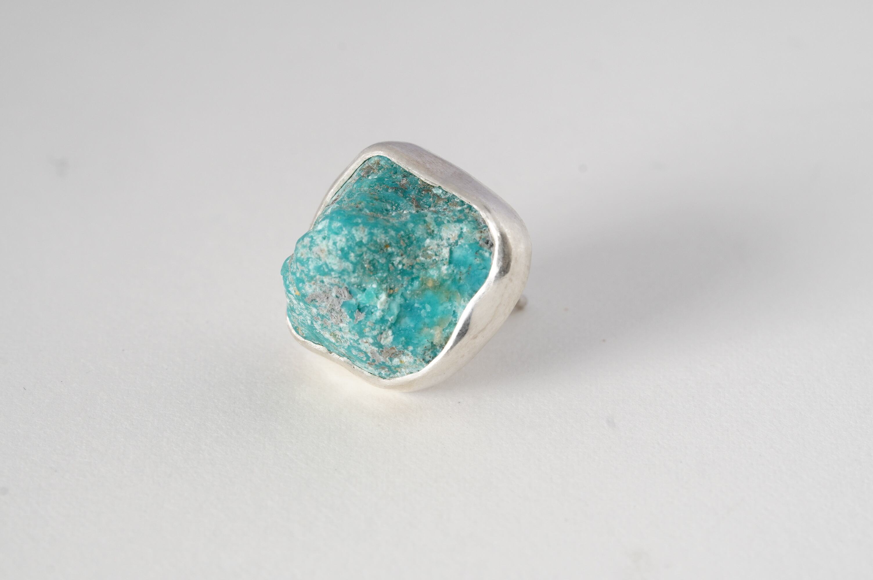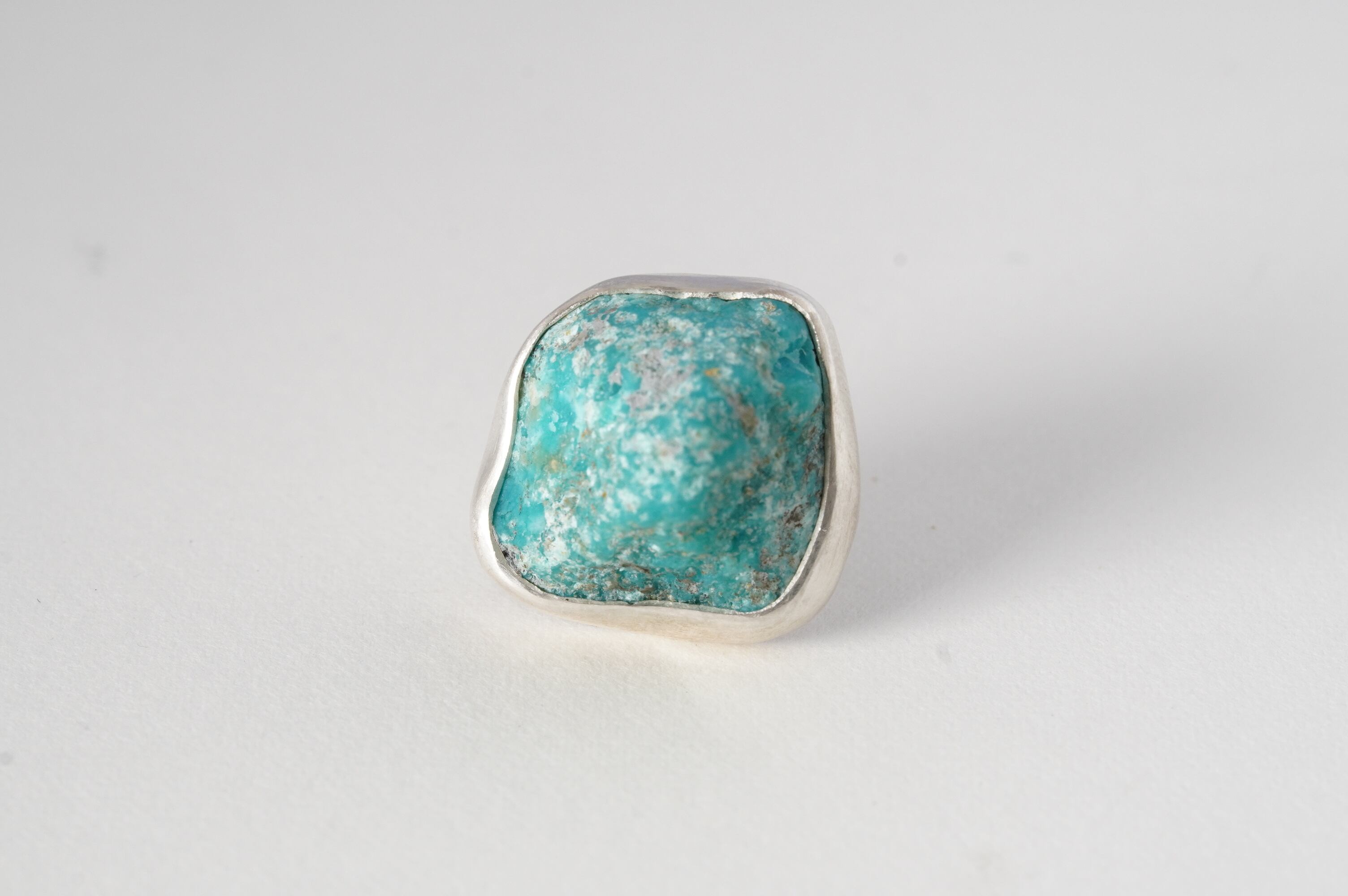 やや大ぶりなkingman turquoiseの原石そのままを、純銀でぐるりと囲み補強しました。