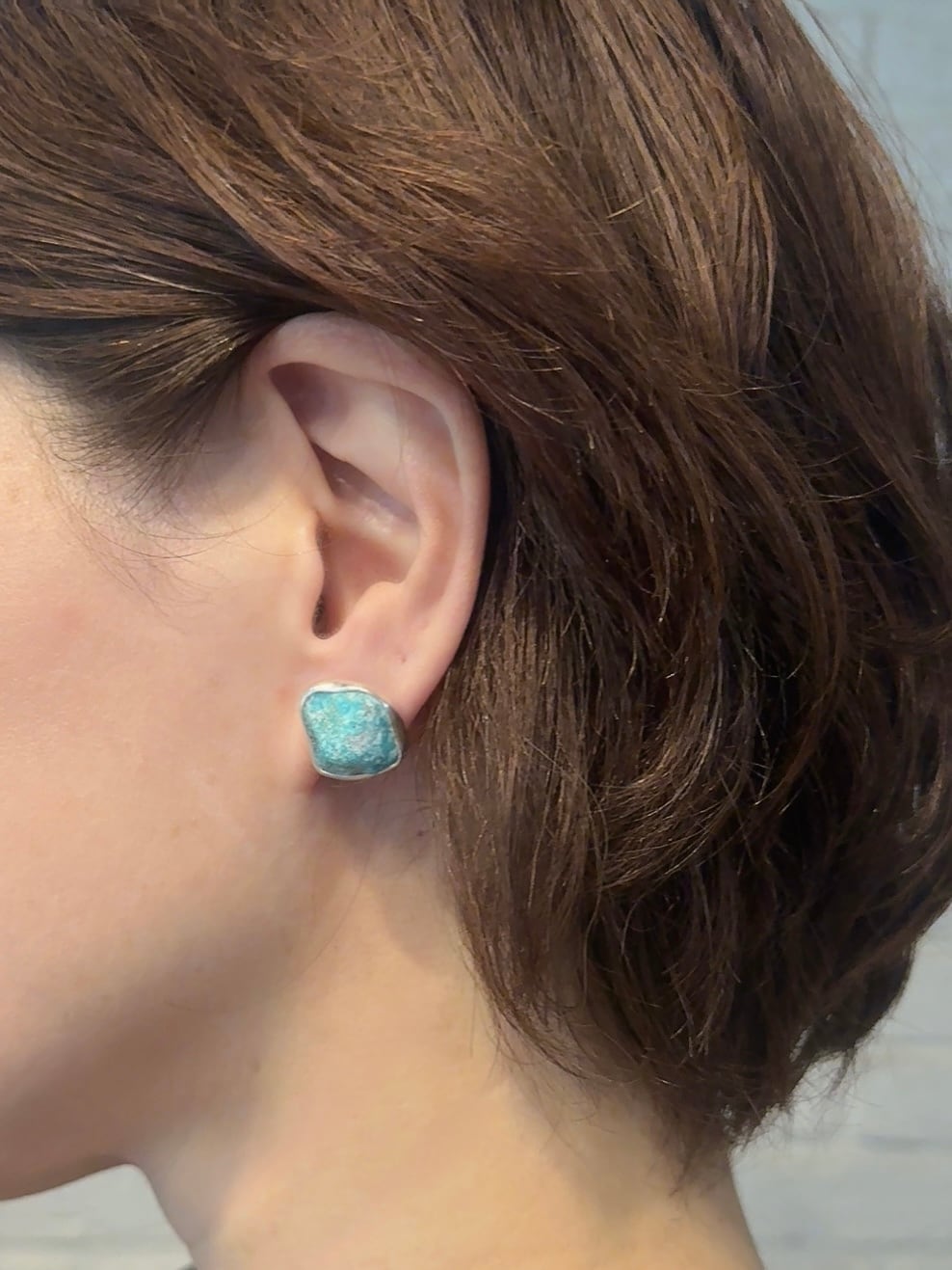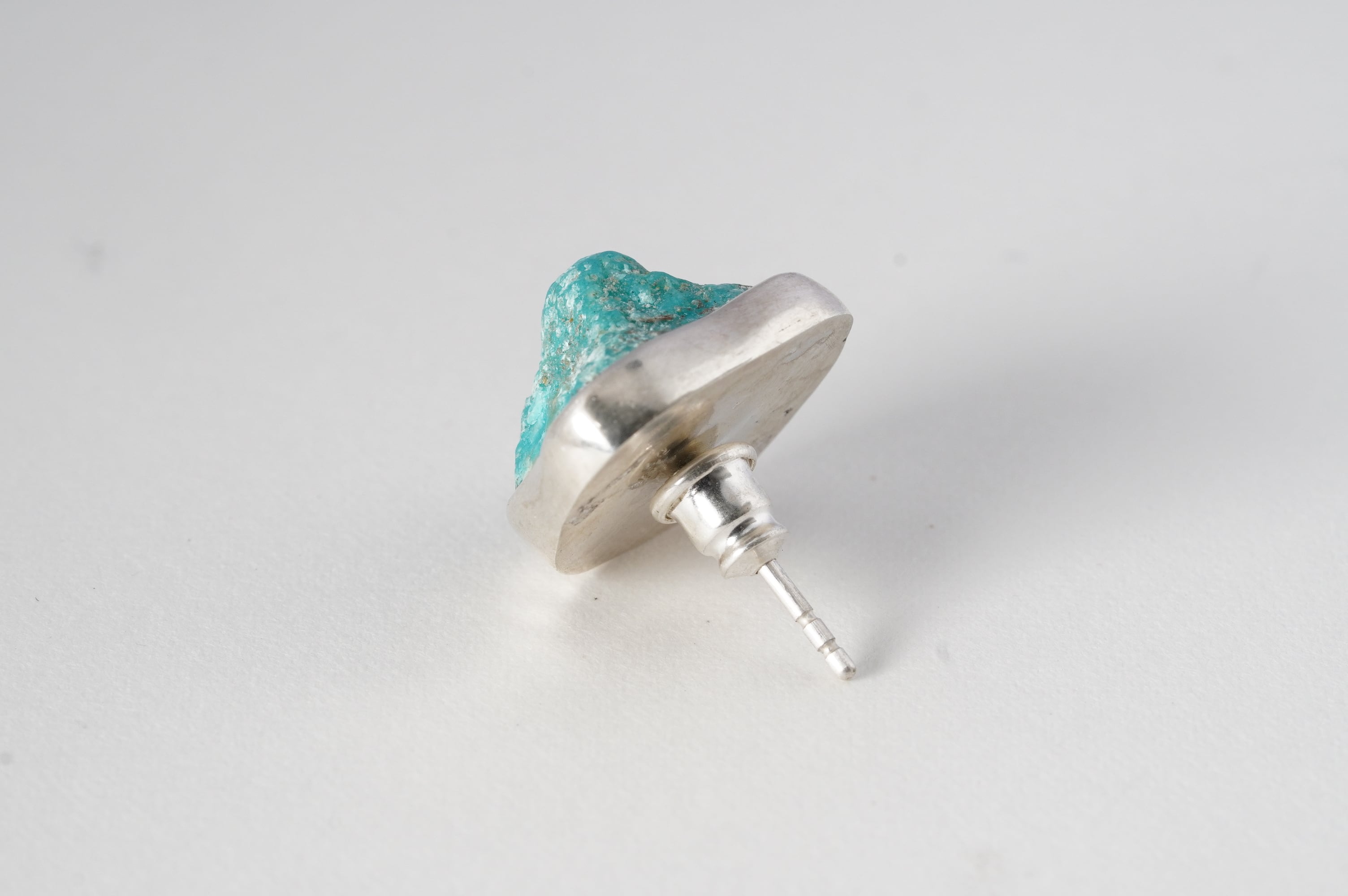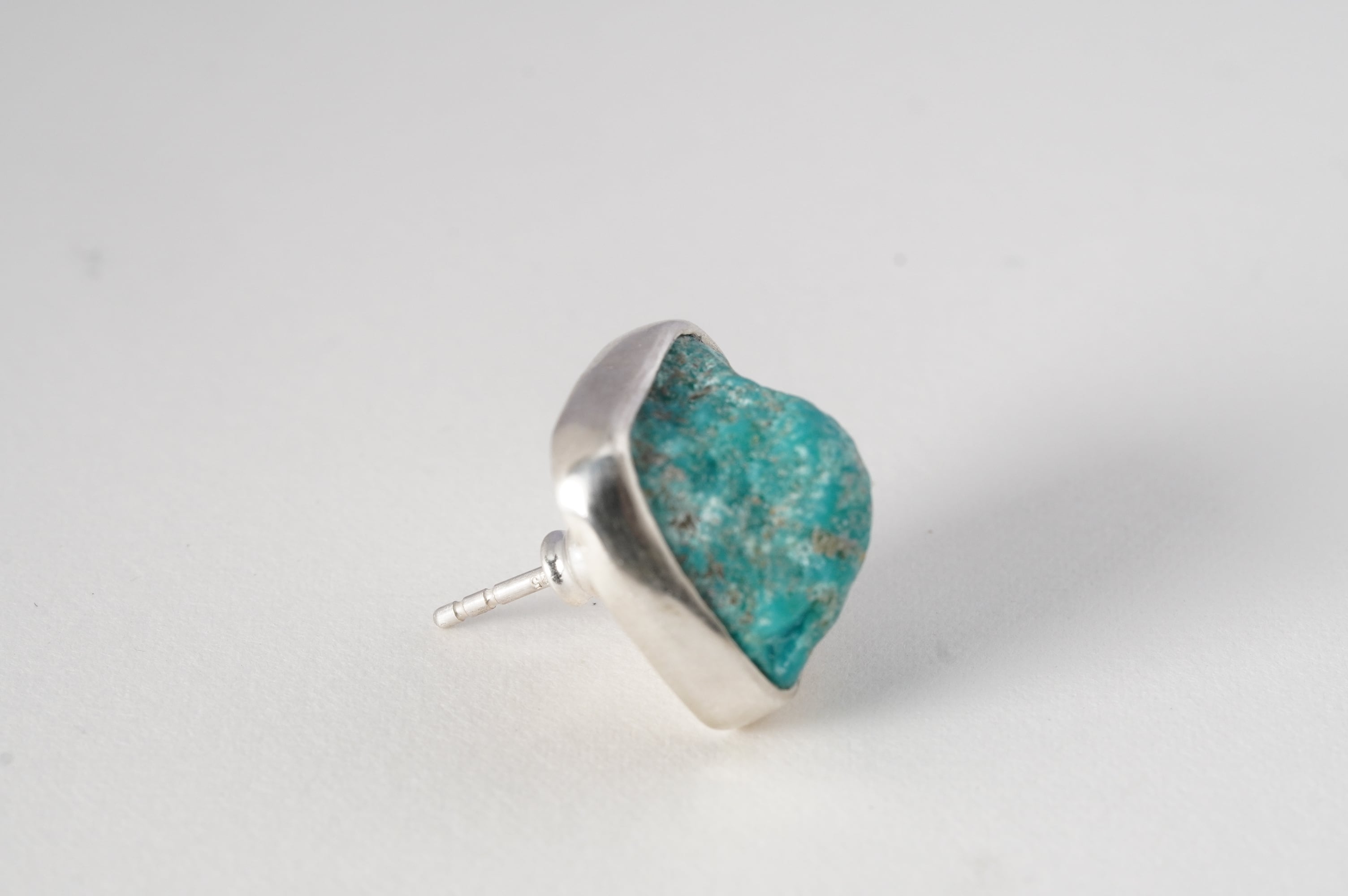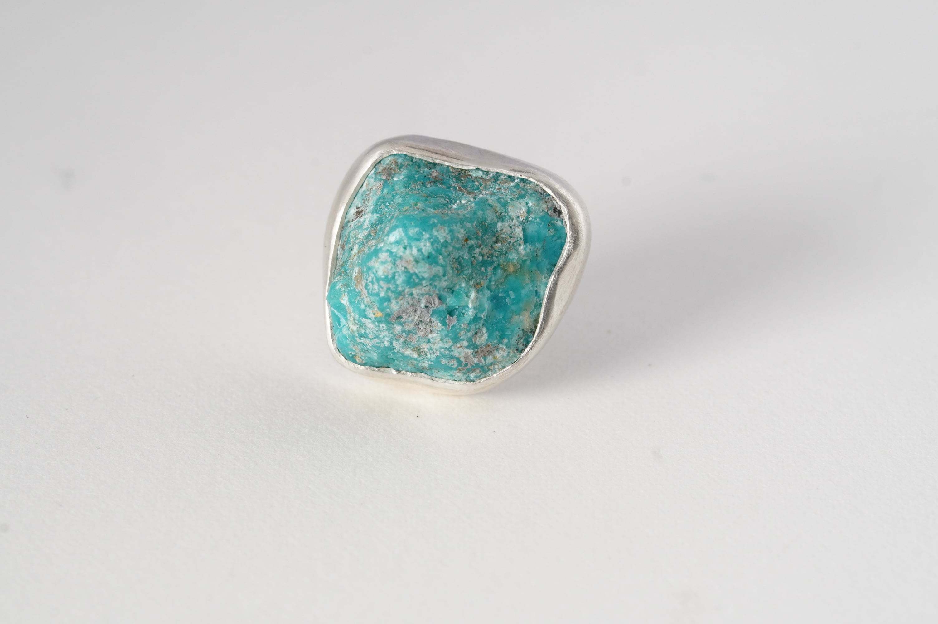 やや大ぶりなkingman turquoiseの原石そのままを、純銀でぐるりと囲み補強しました。