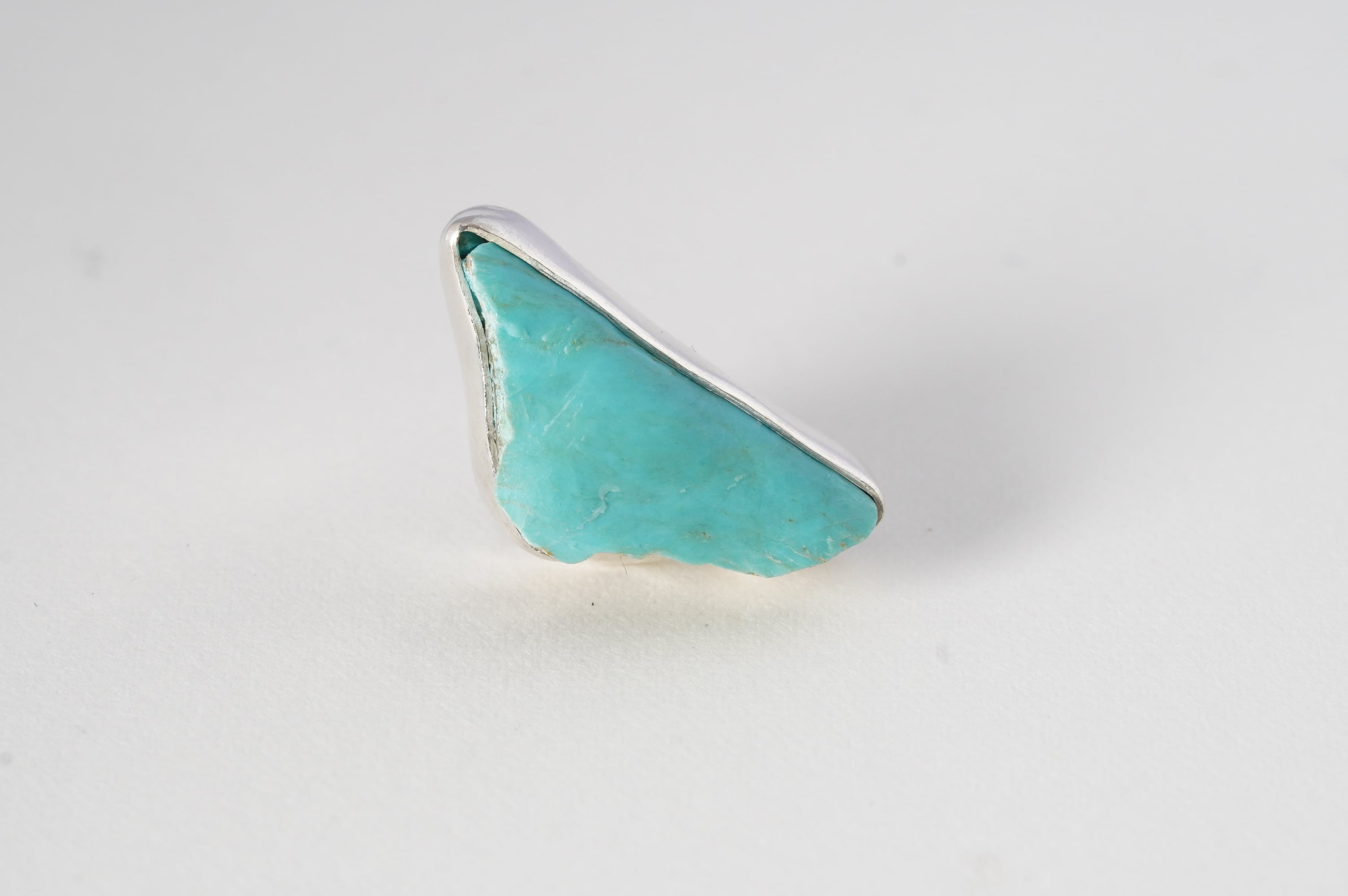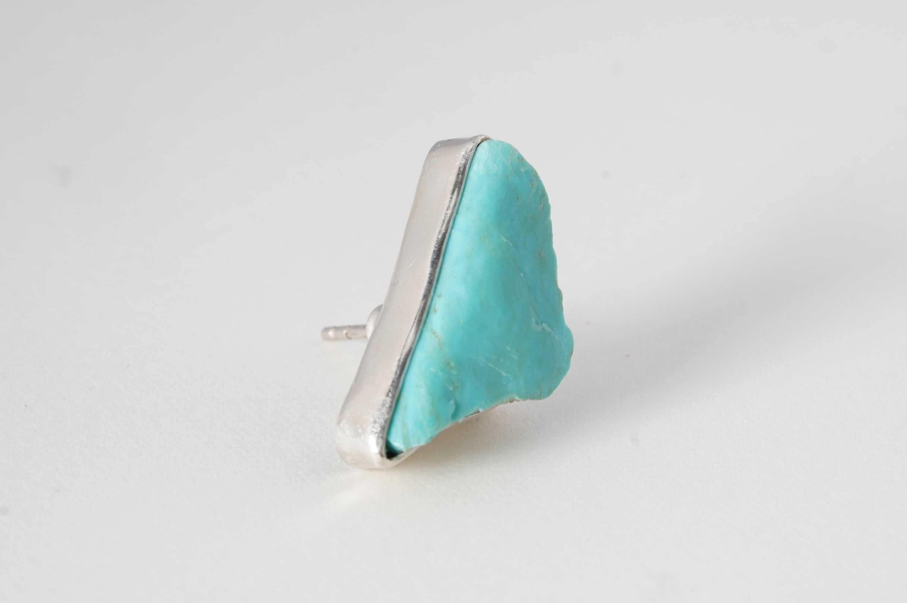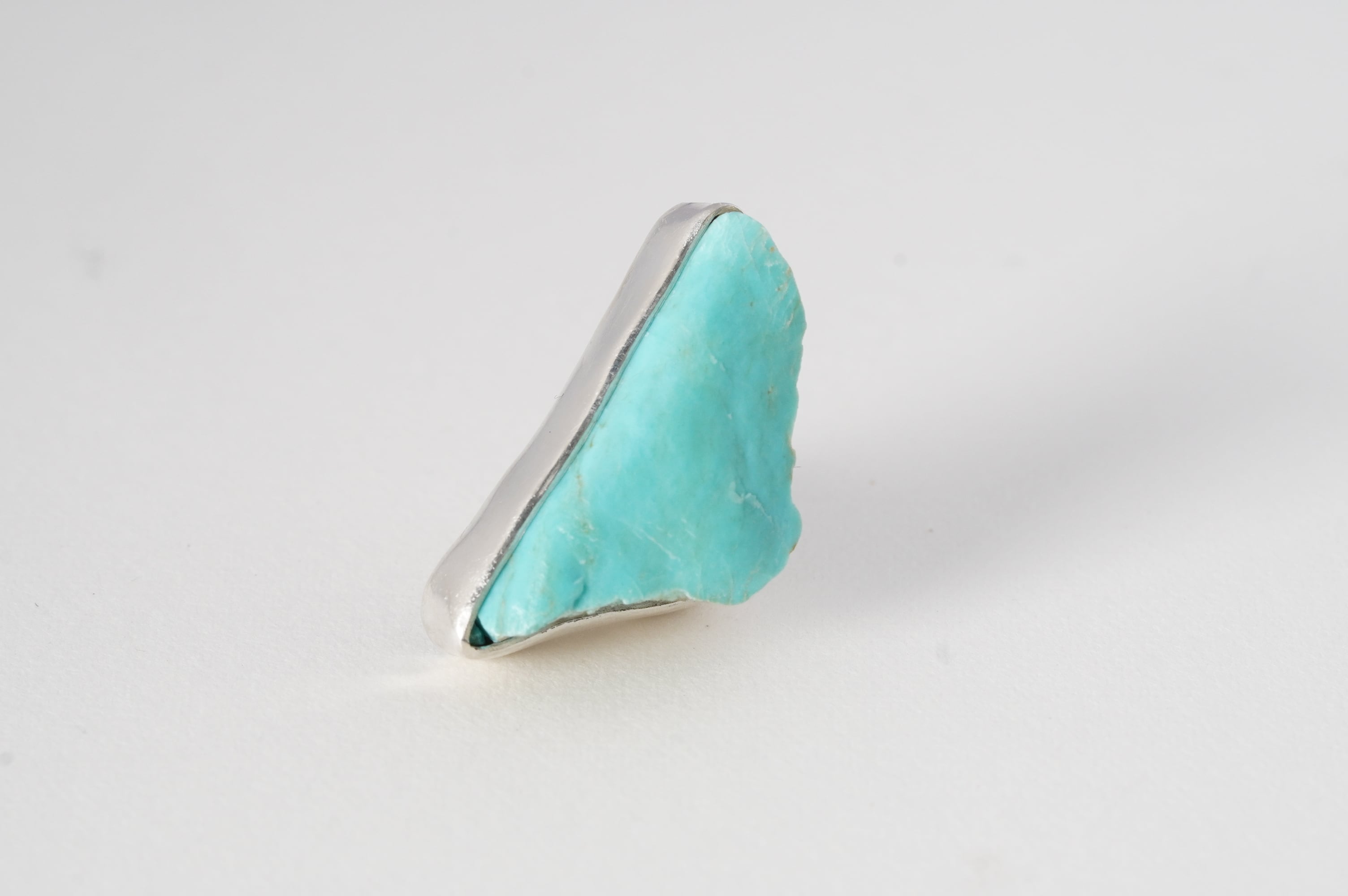 やや大ぶりなkingman turquoiseの原石そのままを、純銀でぐるりと囲み補強しました。