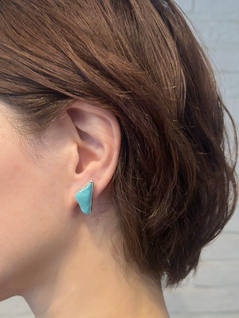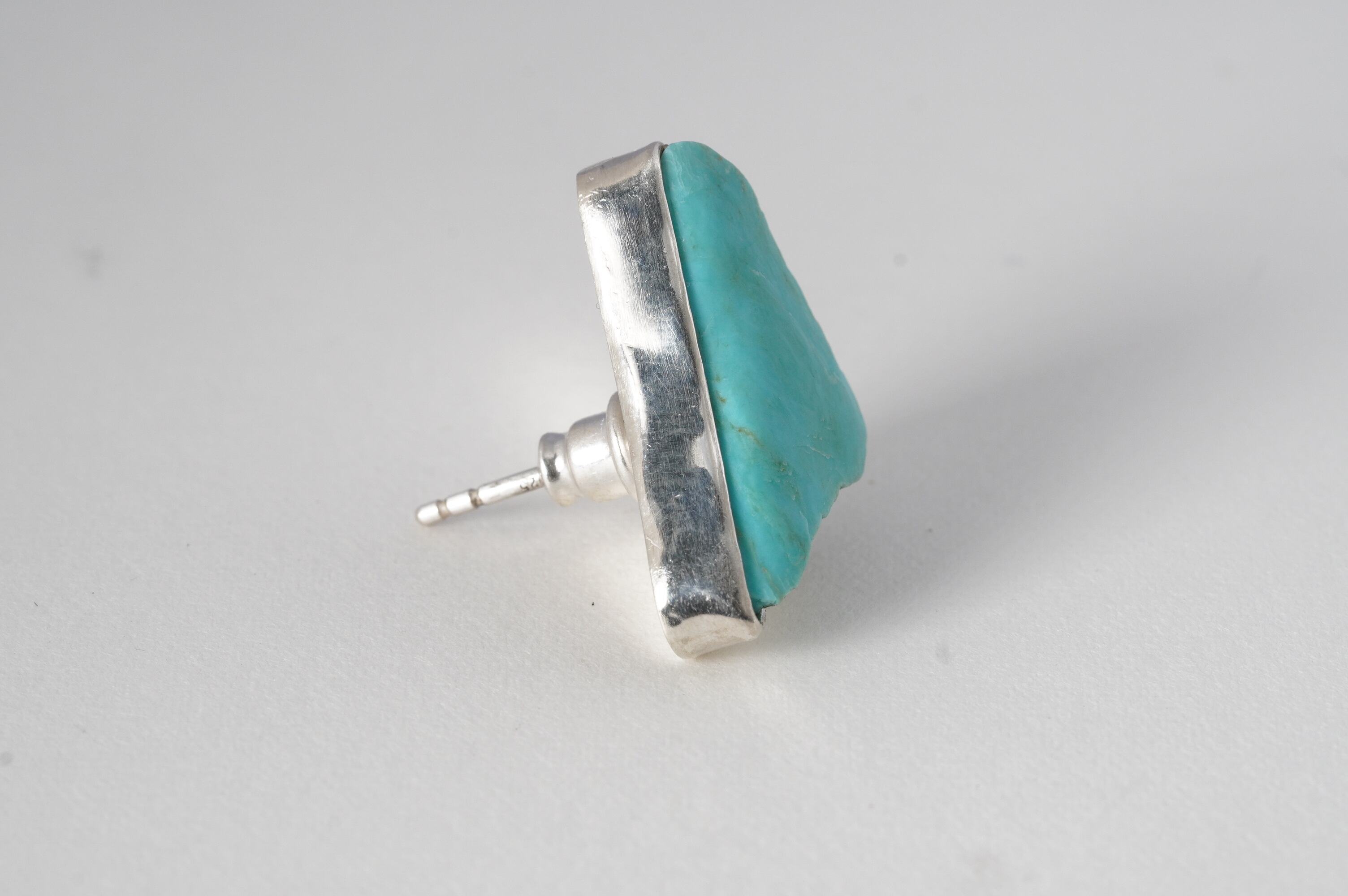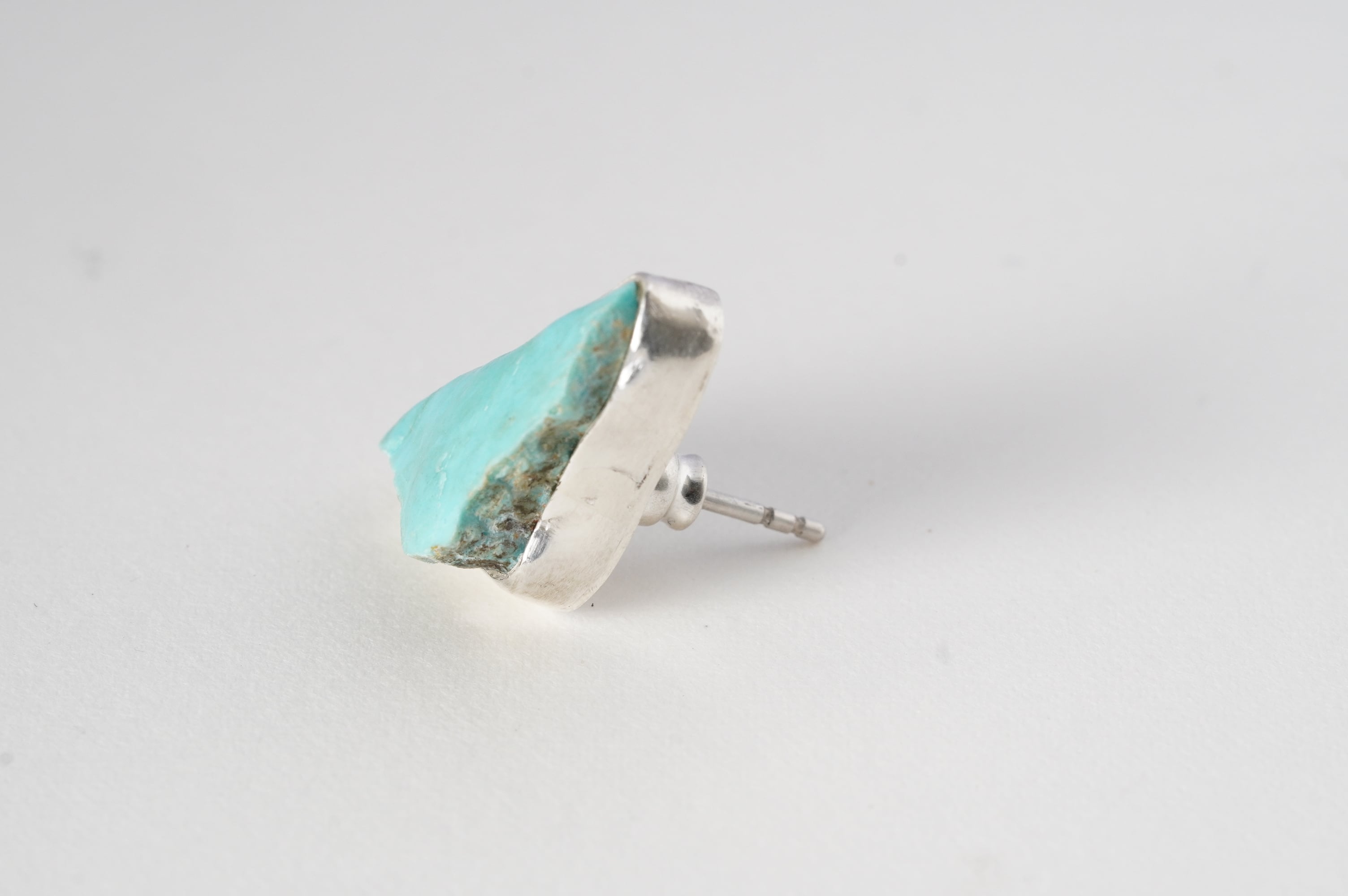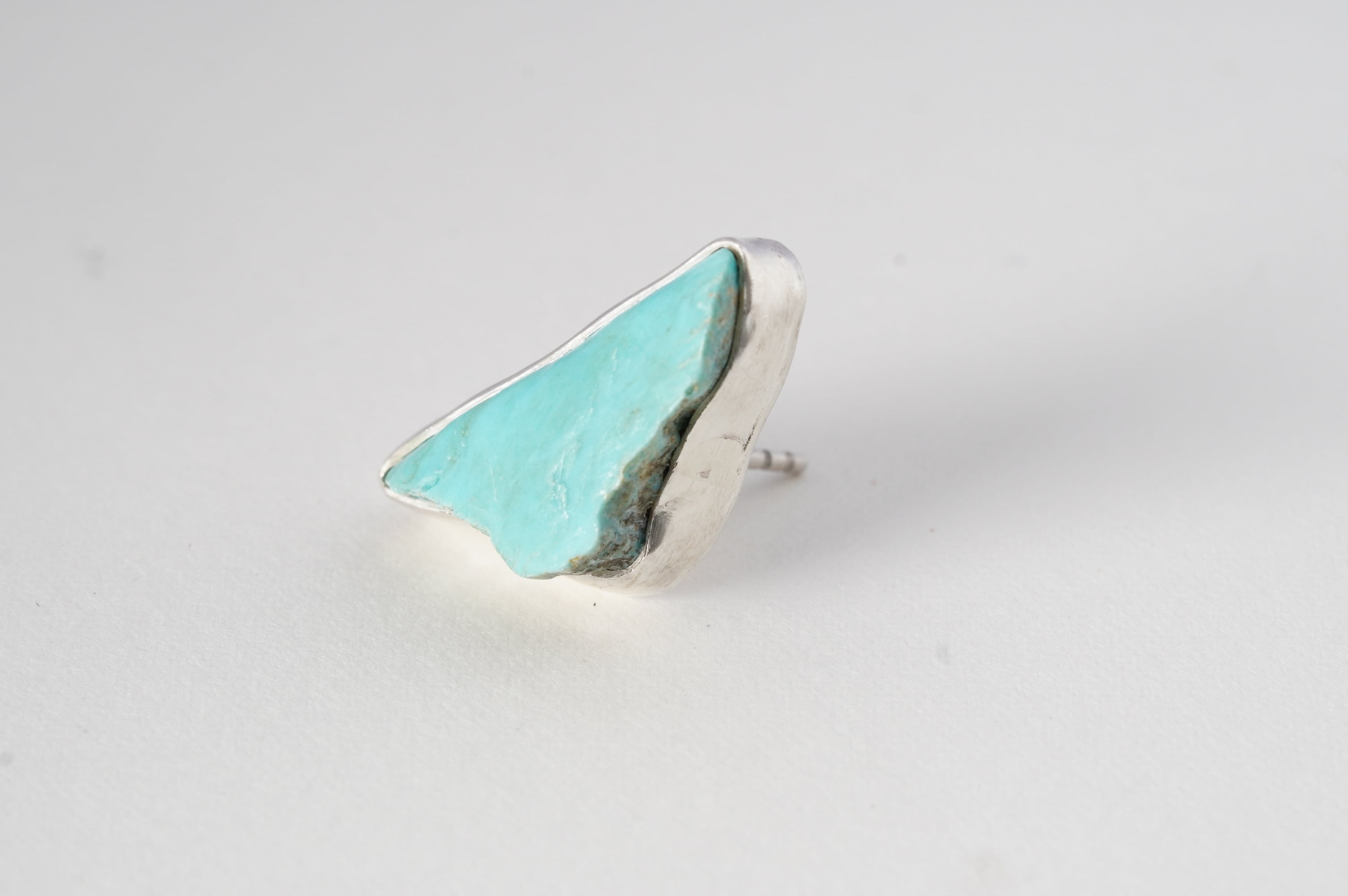 やや大ぶりなkingman turquoiseの原石そのままを、純銀でぐるりと囲み補強しました。
