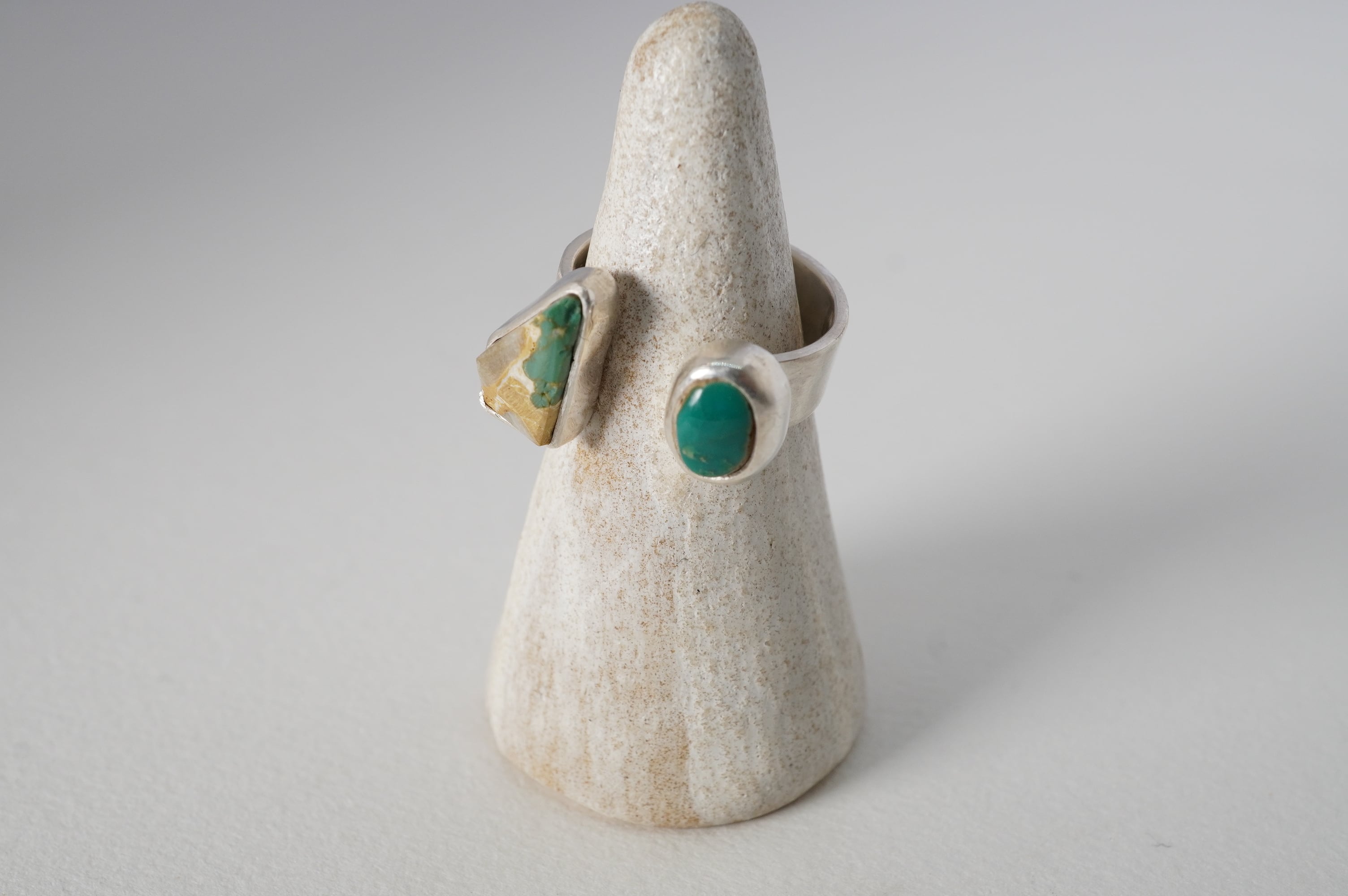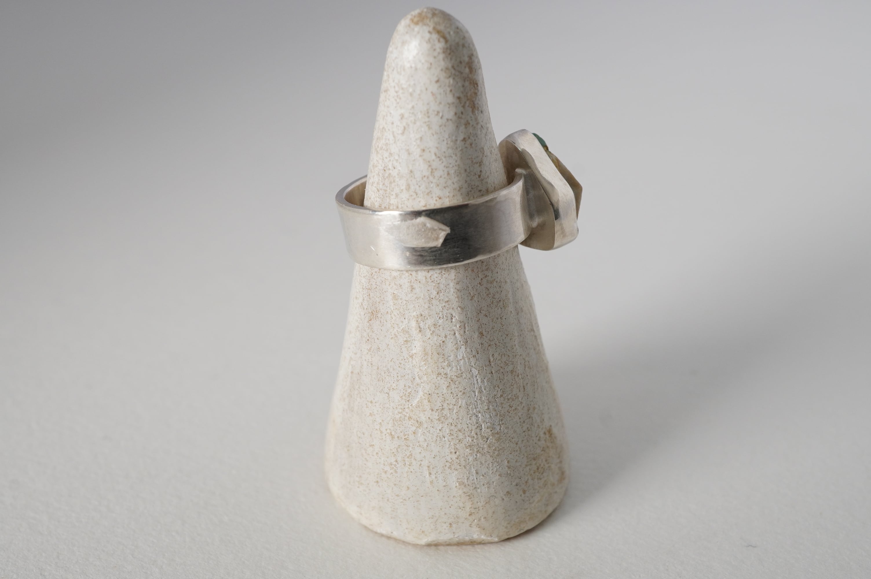 緑の屋根の小さなお家。そこに屋根と同じ色のルースを添えて Tsugai ringにしました。