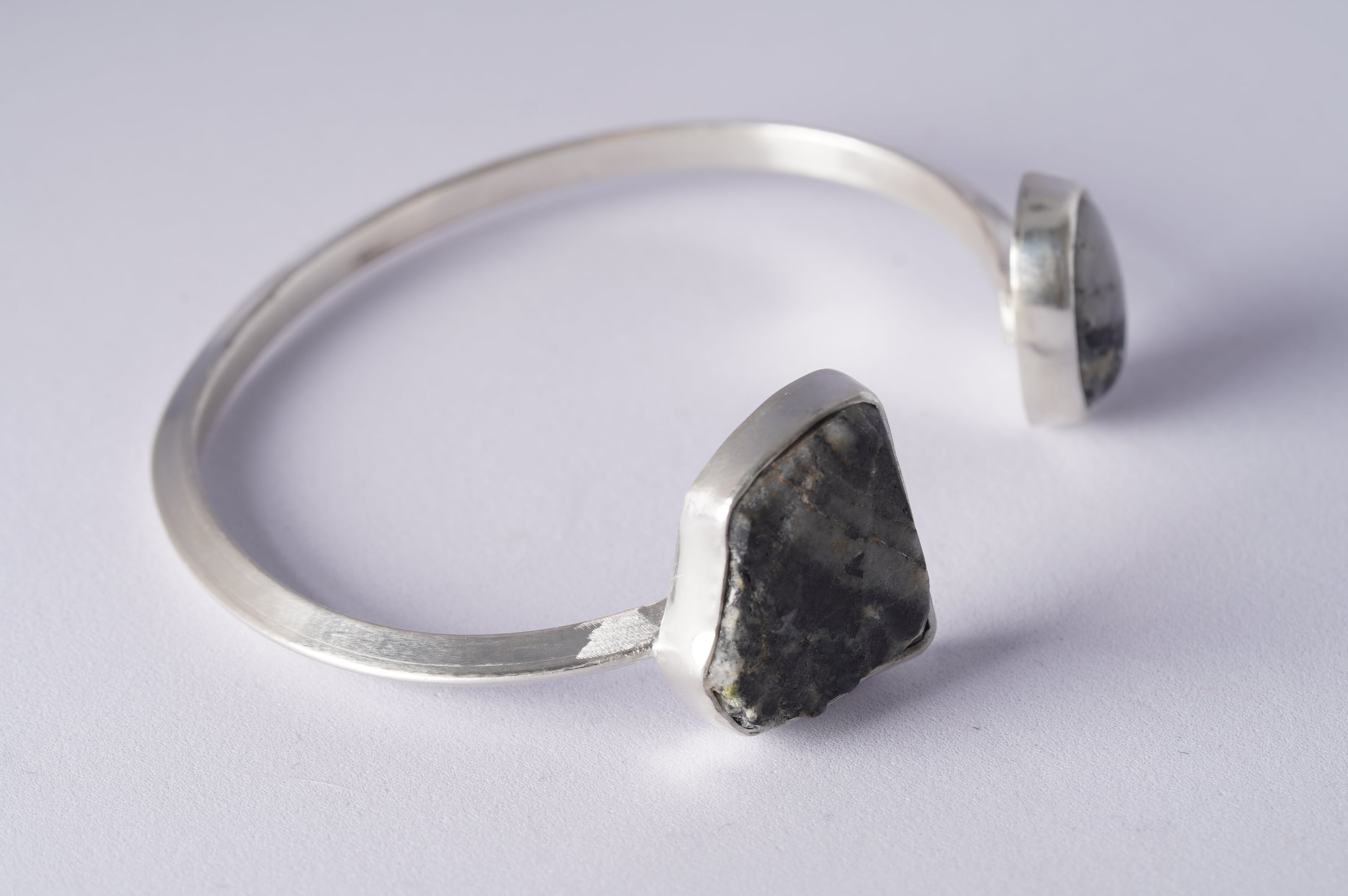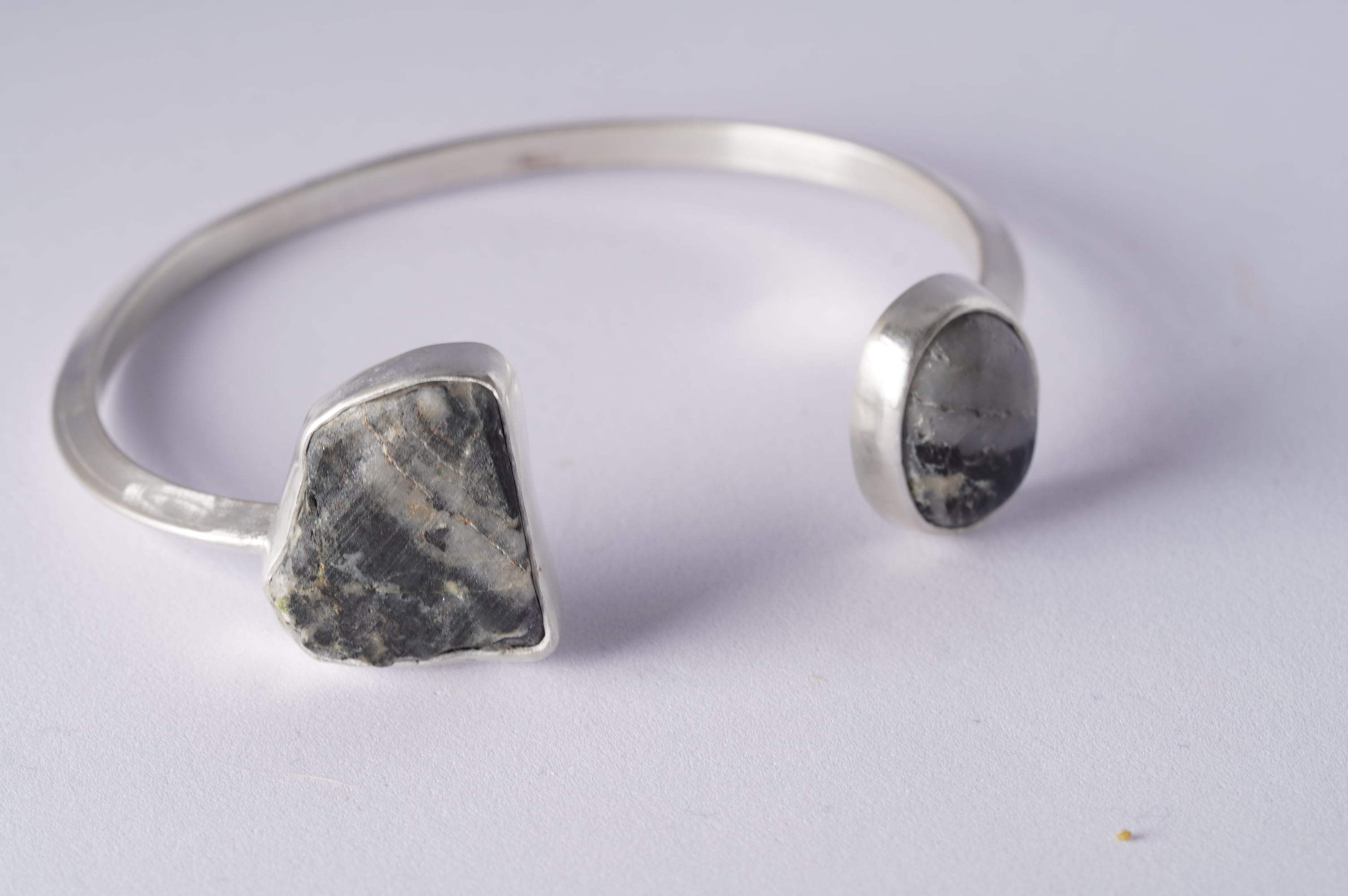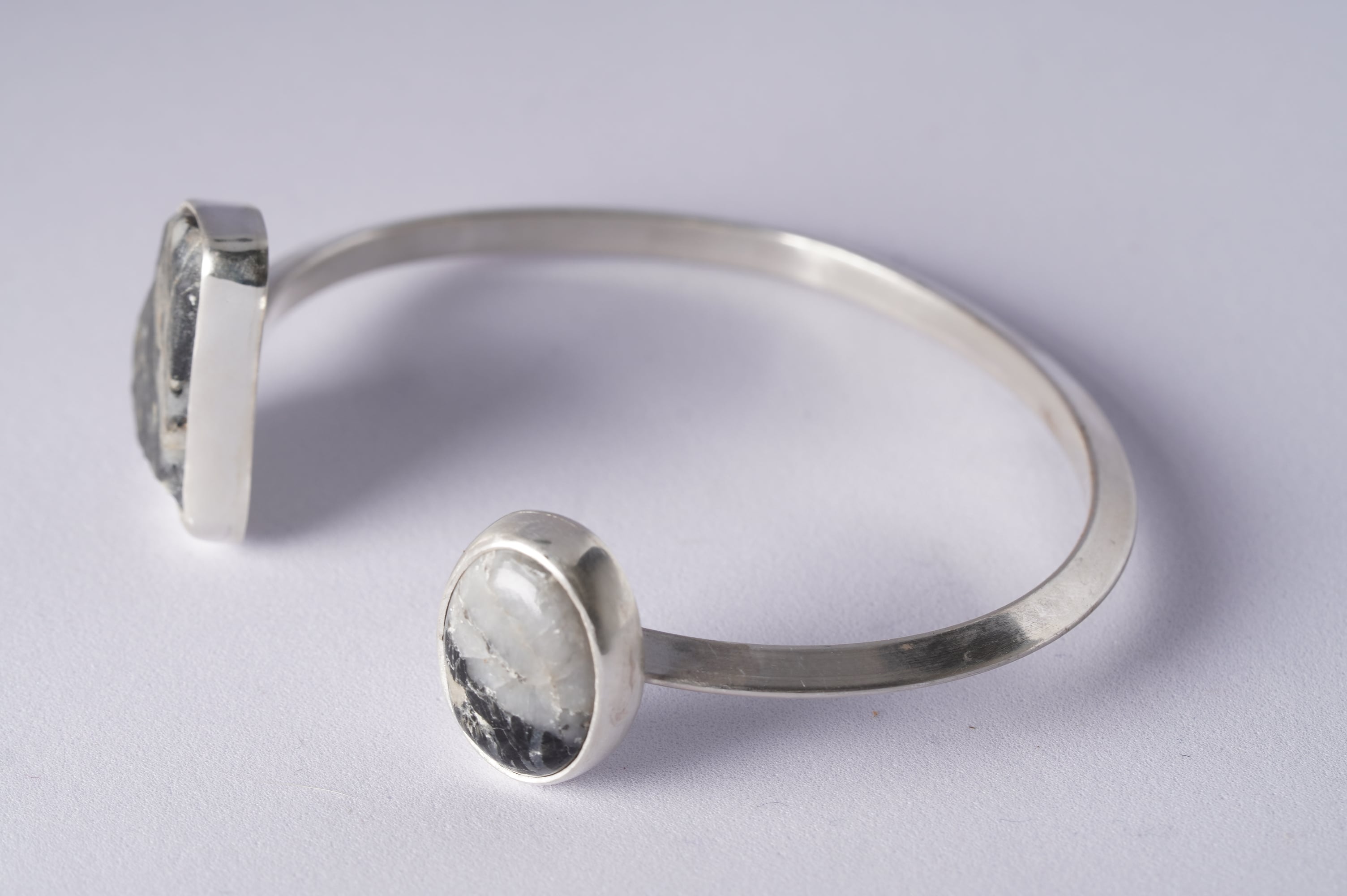 マットつ艶の対比がありながらも斜めに走るモノトーンの柄が二つの石を繋いでいます。