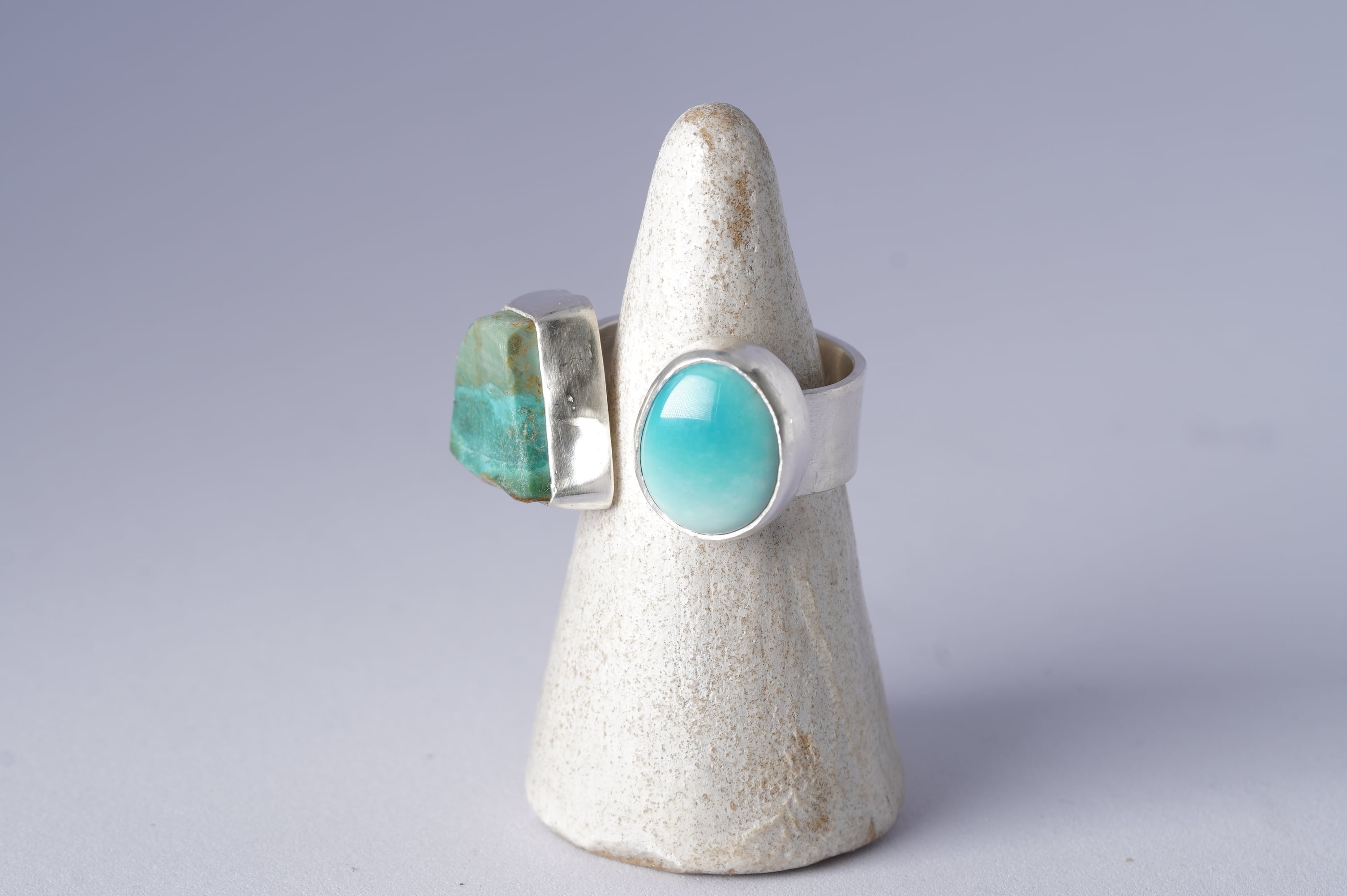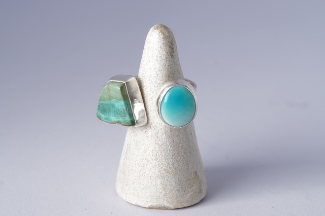 そこに澄み切った天空の青空を切り取ったような丸いルースを添えました。