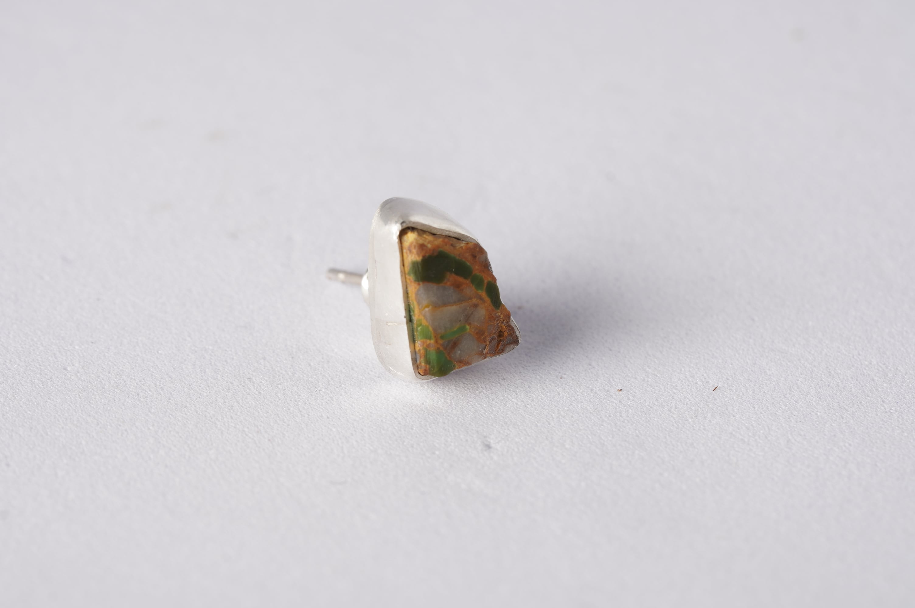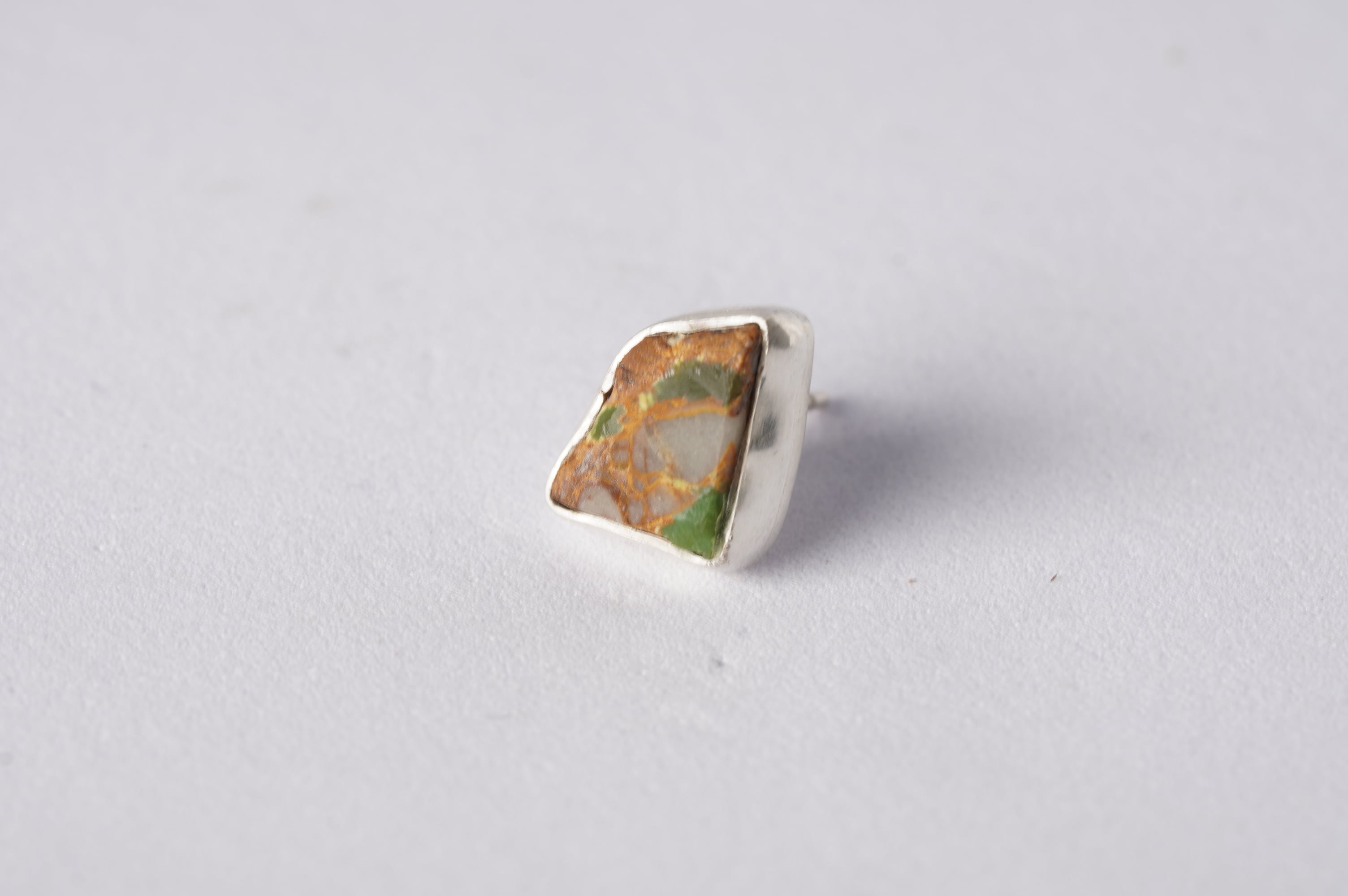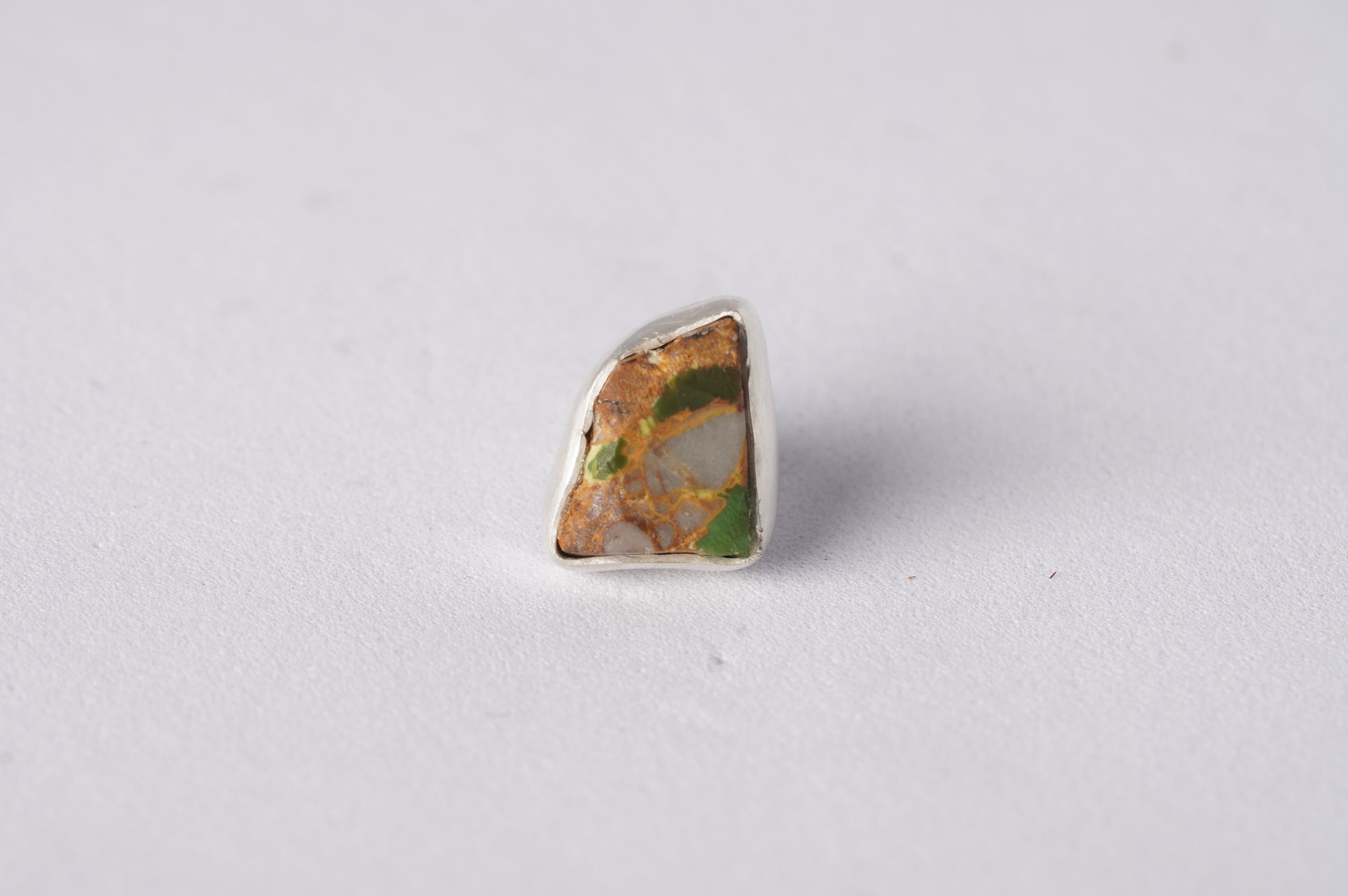 抽象絵画のようなroystonturquoiseのカケラを、補強するために純銀で額縁をつけました。