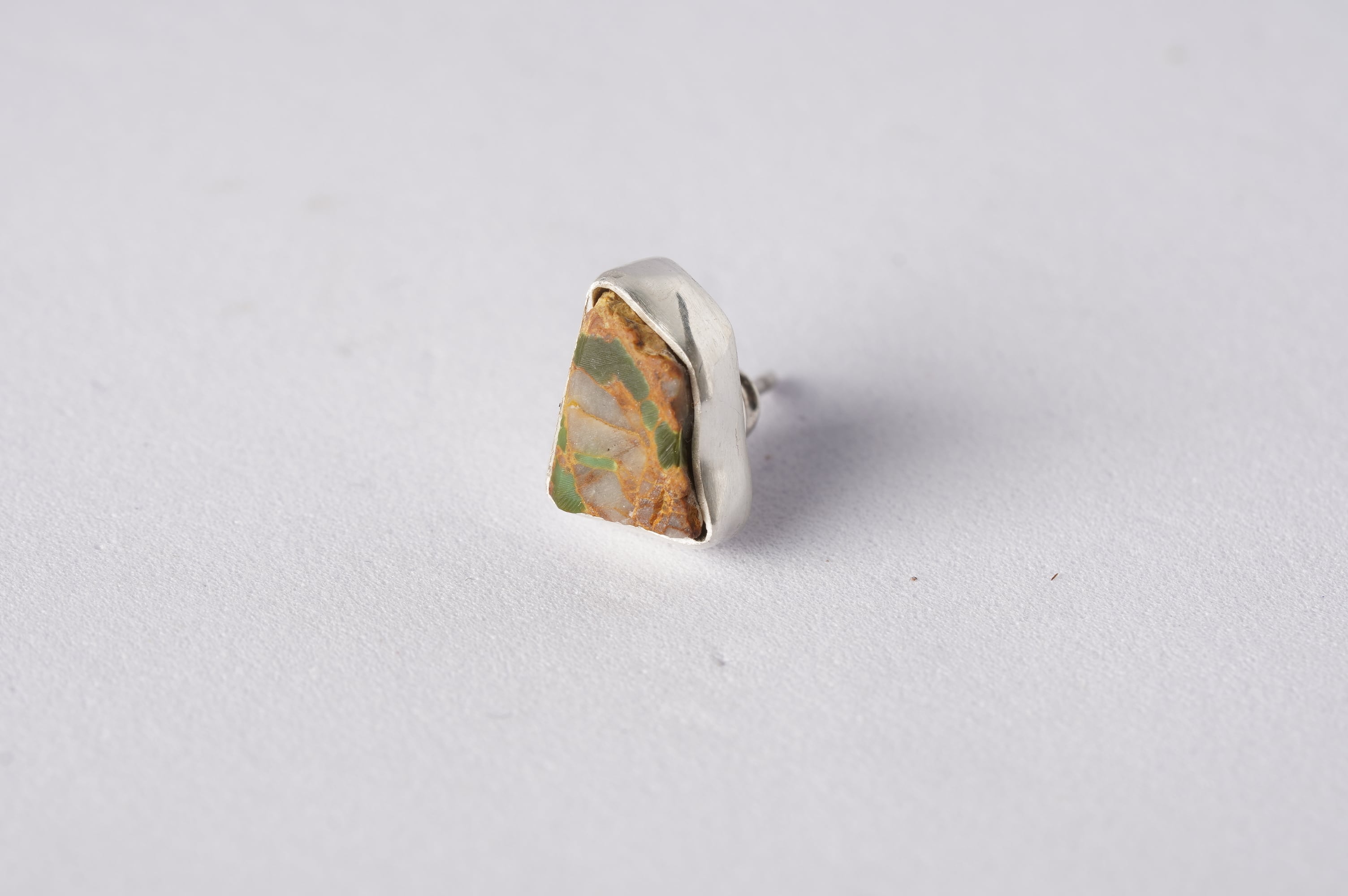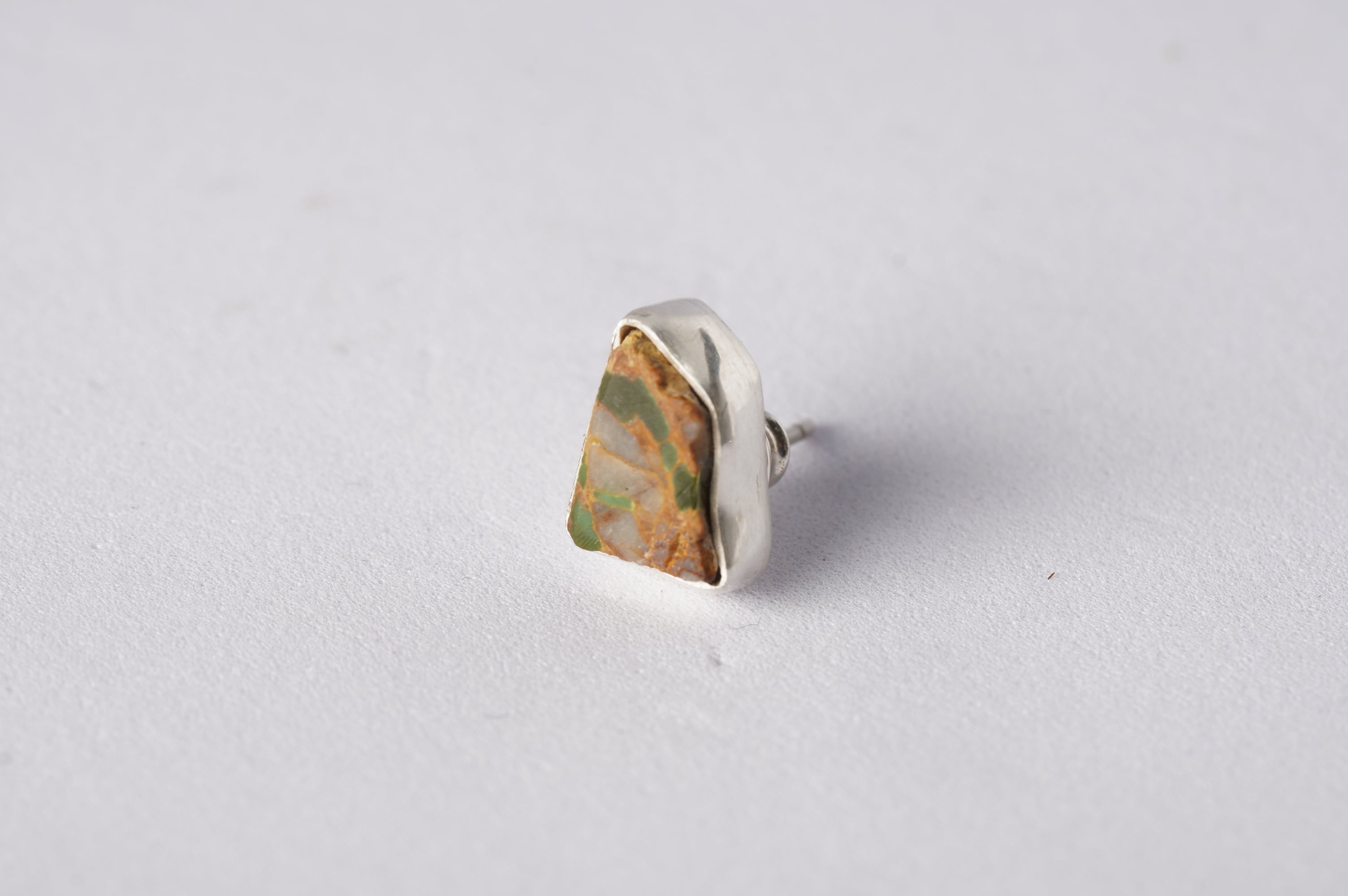抽象絵画のようなroystonturquoiseのカケラを、補強するために純銀で額縁をつけました。