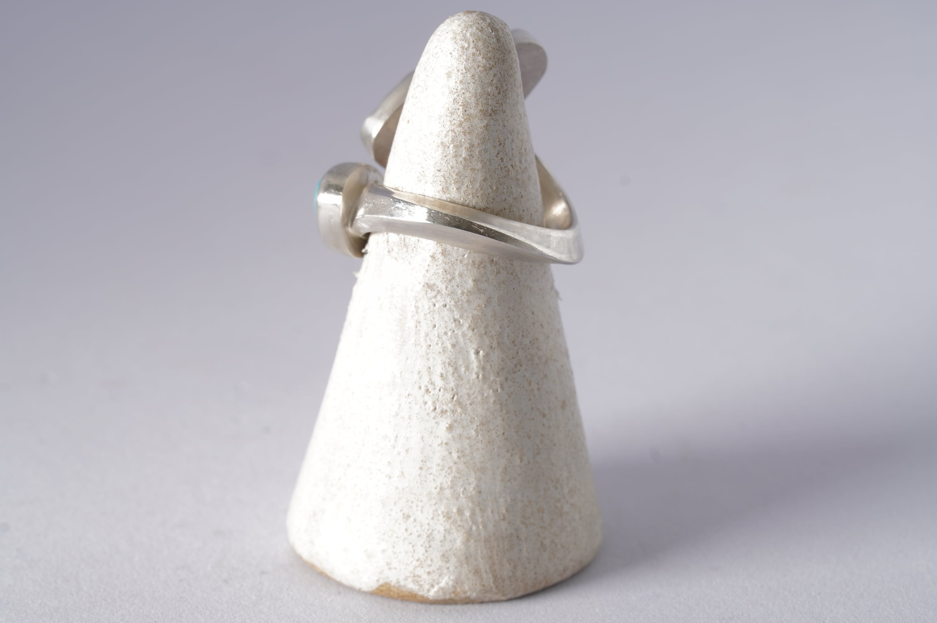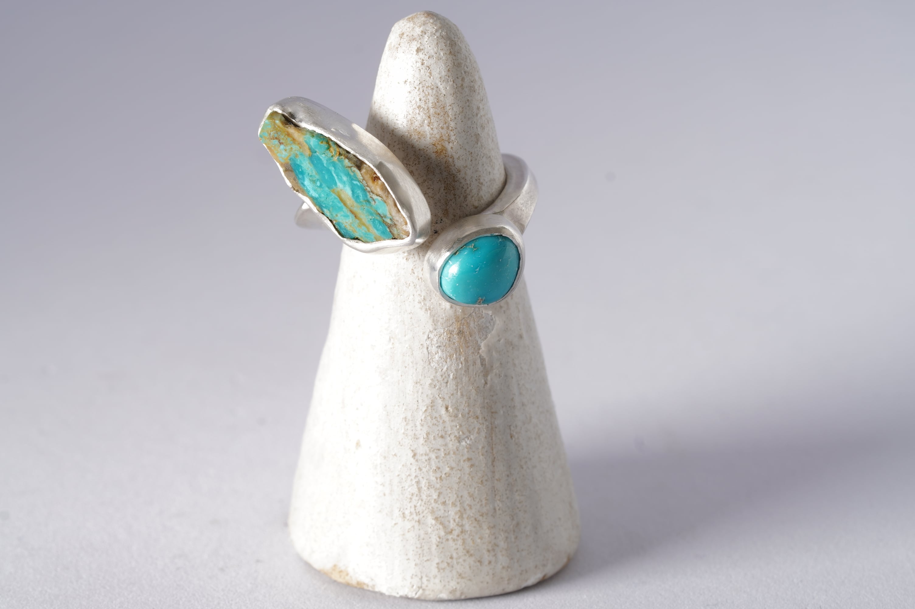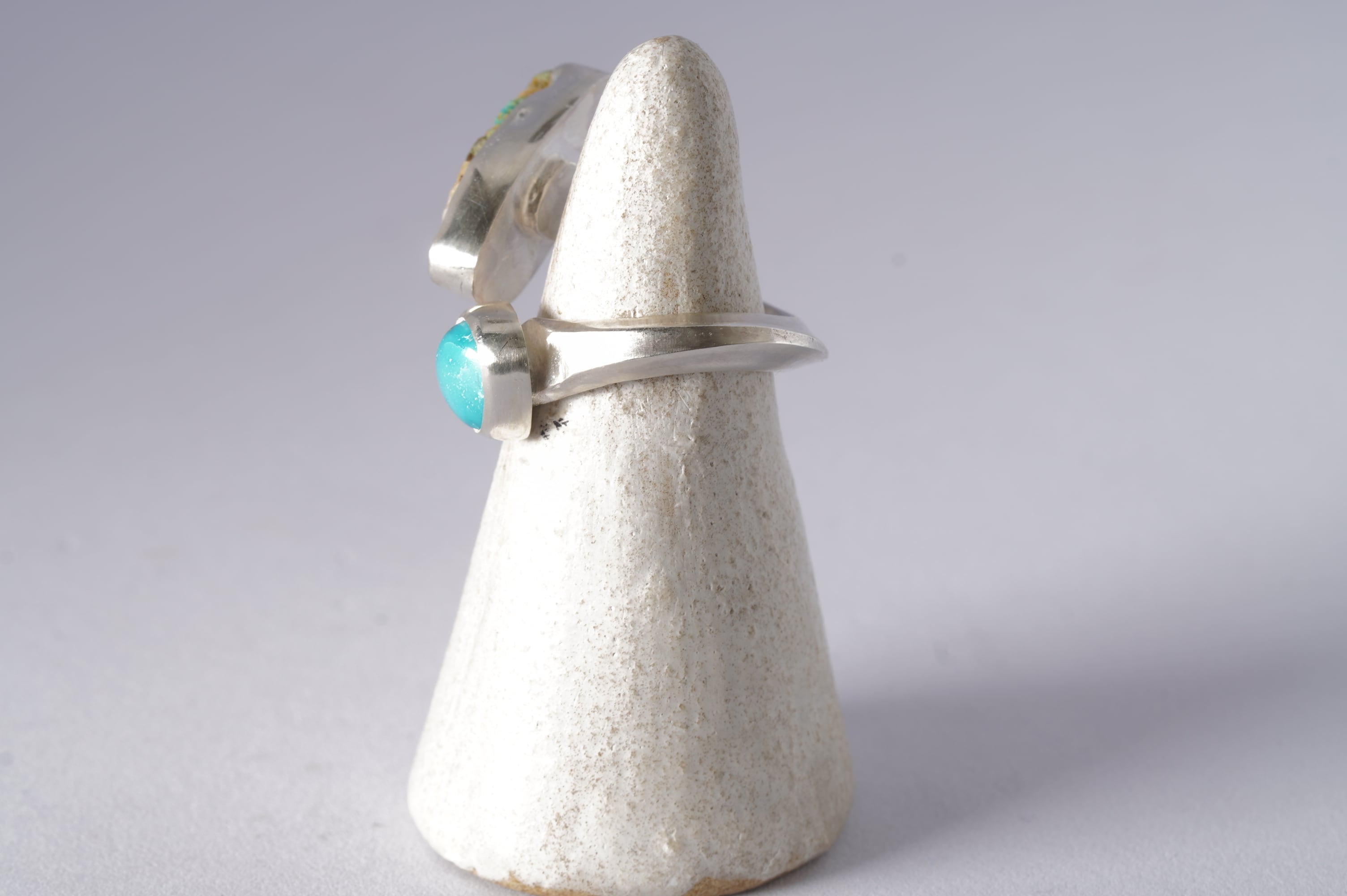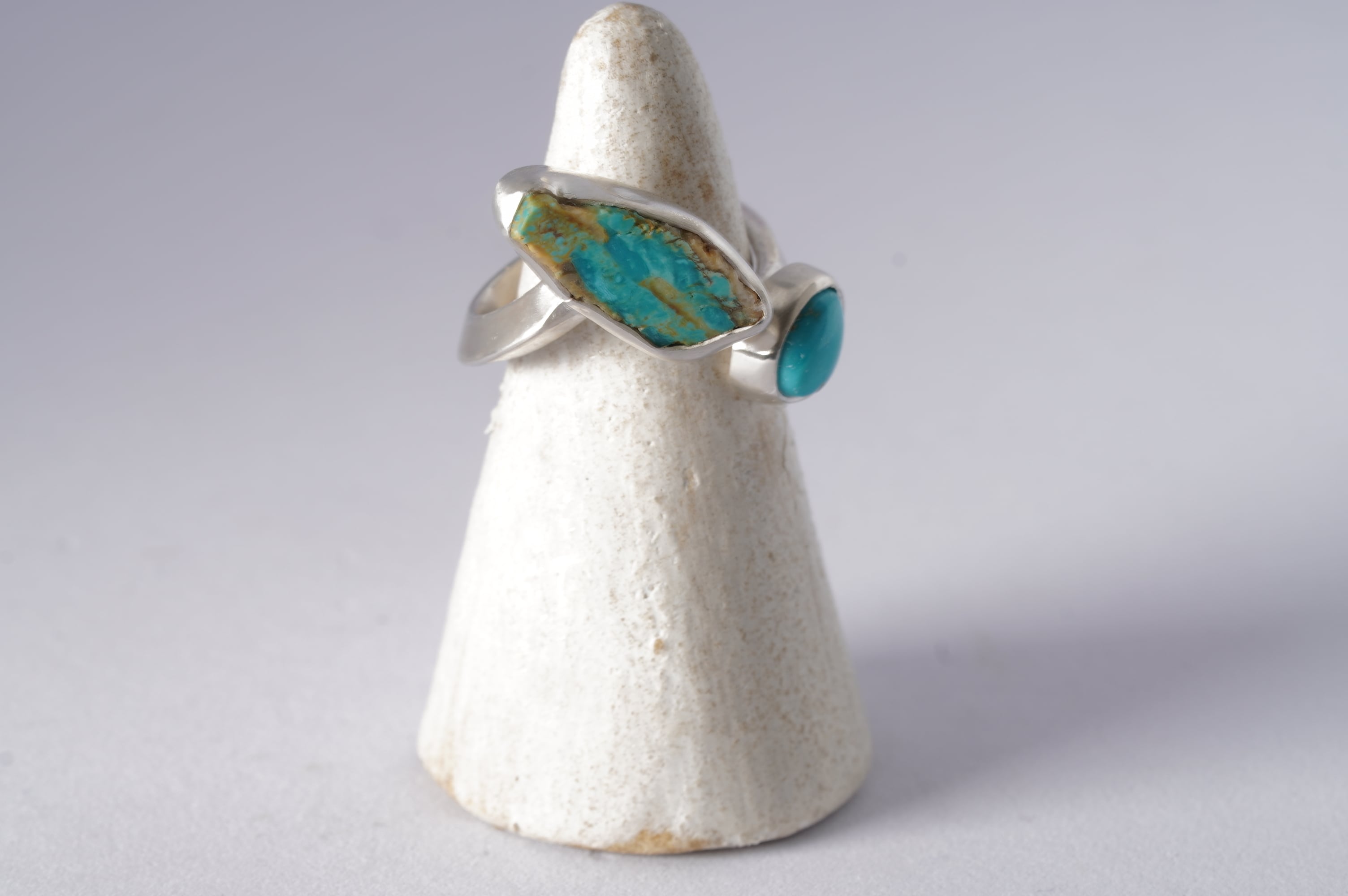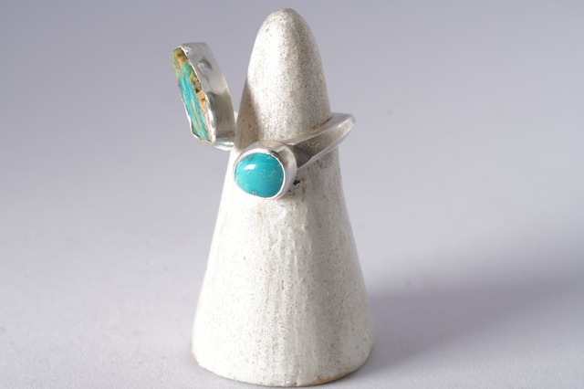 同じくらいビビットなターコイズらしいブルーのルースを添えて定番のTwist ringを作りました。