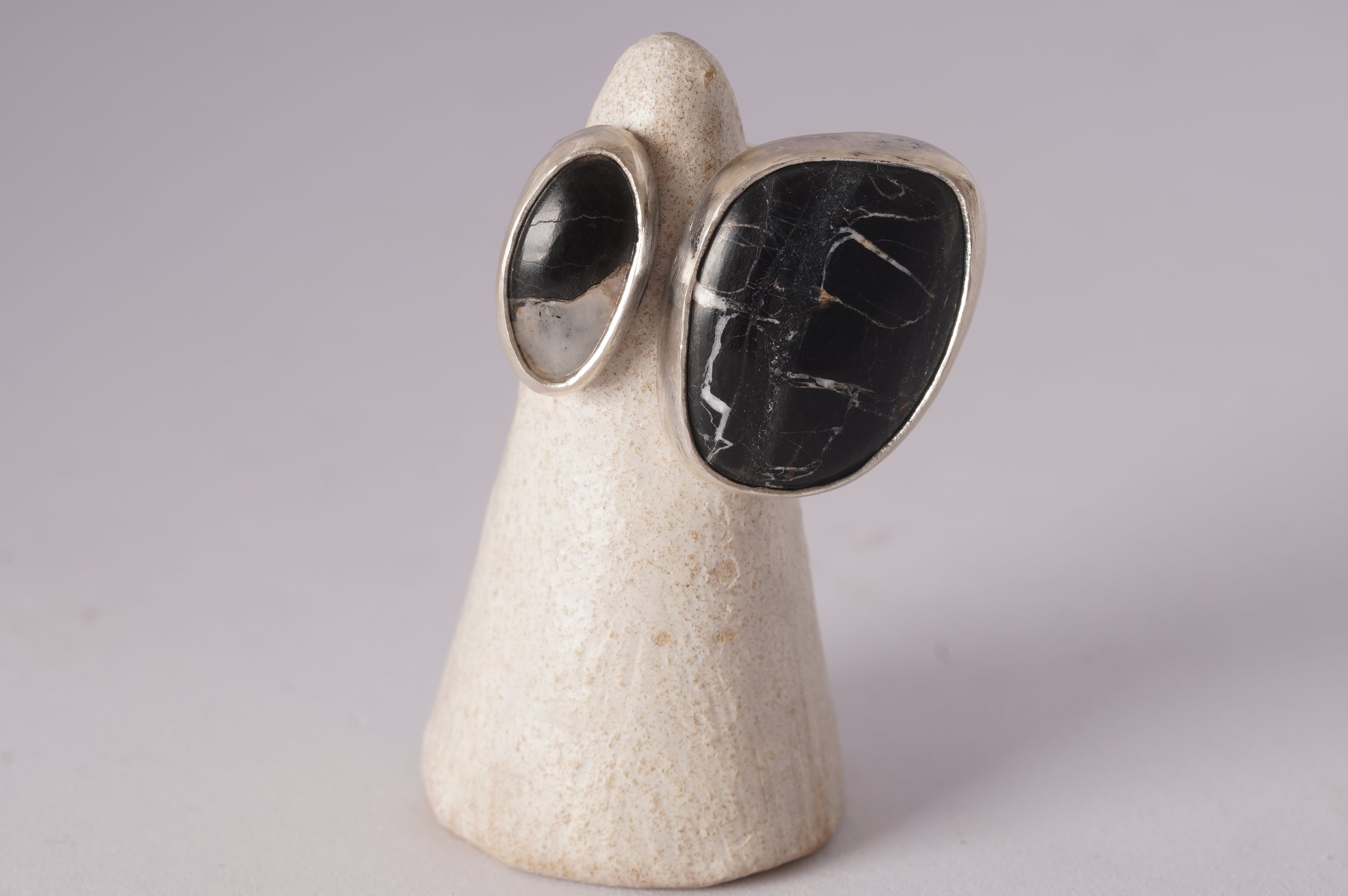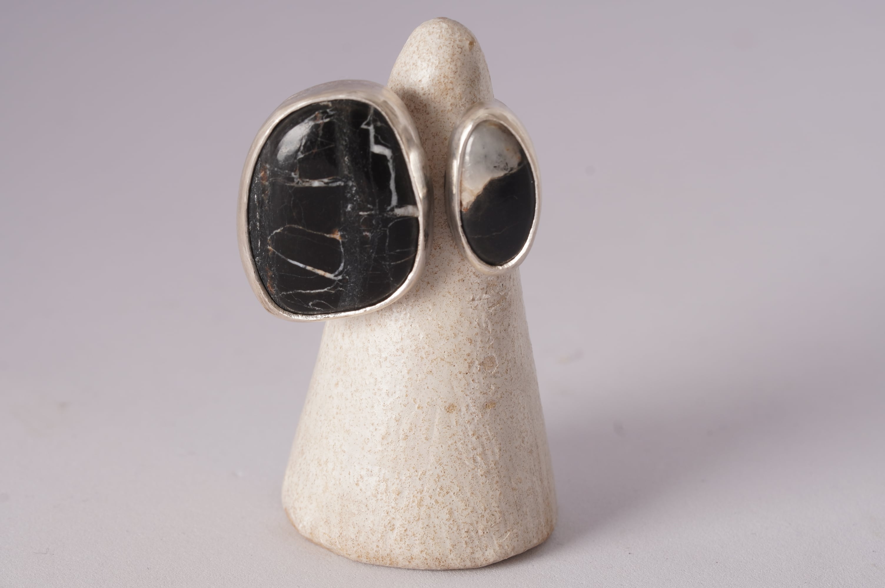 それに合わせて、同じくバイカラーのWhite Buffaloの縦長のルースを添えました。
