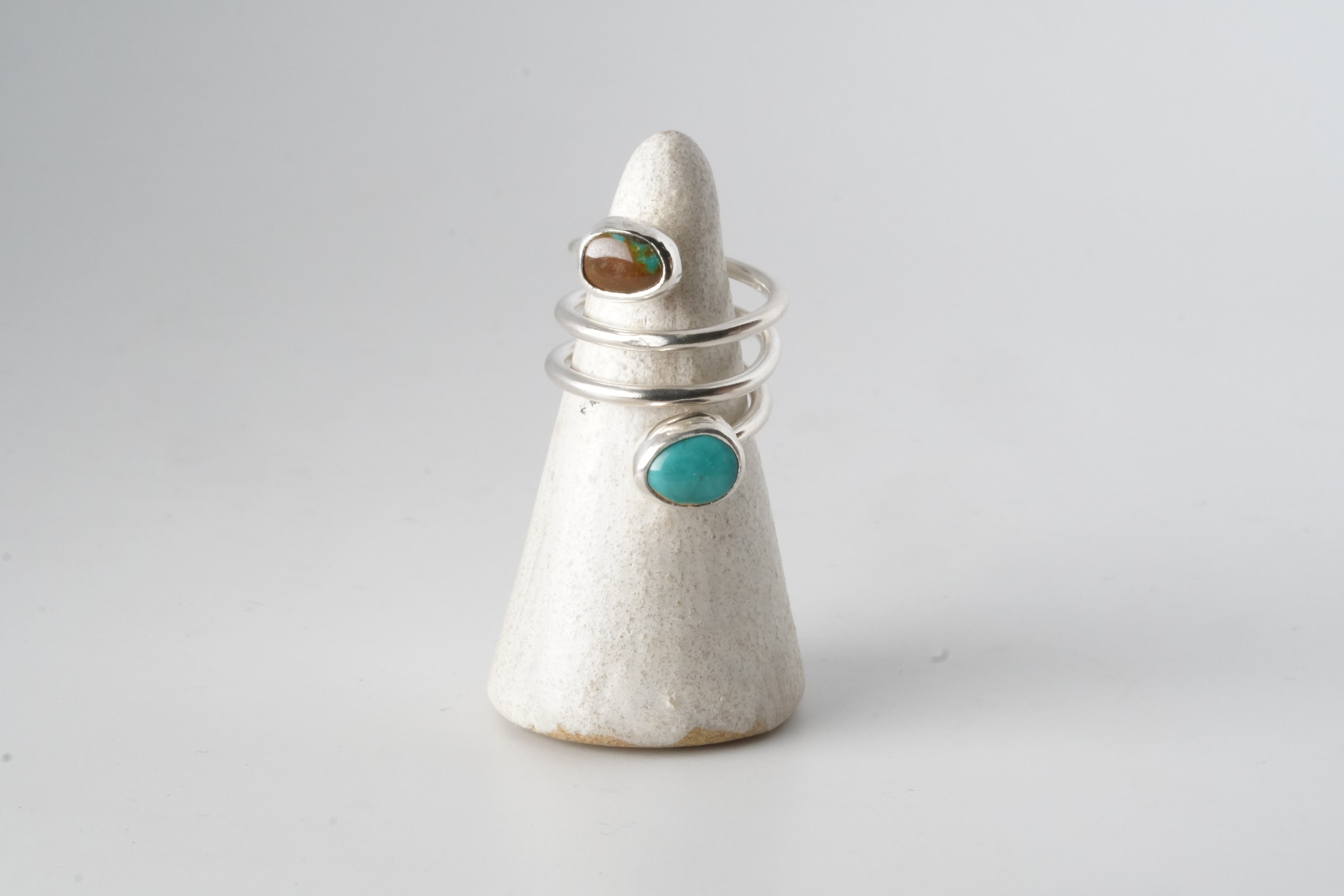 予め形を考えるでもなく、偶然出来上がった形の先端のターコイズをつけました。