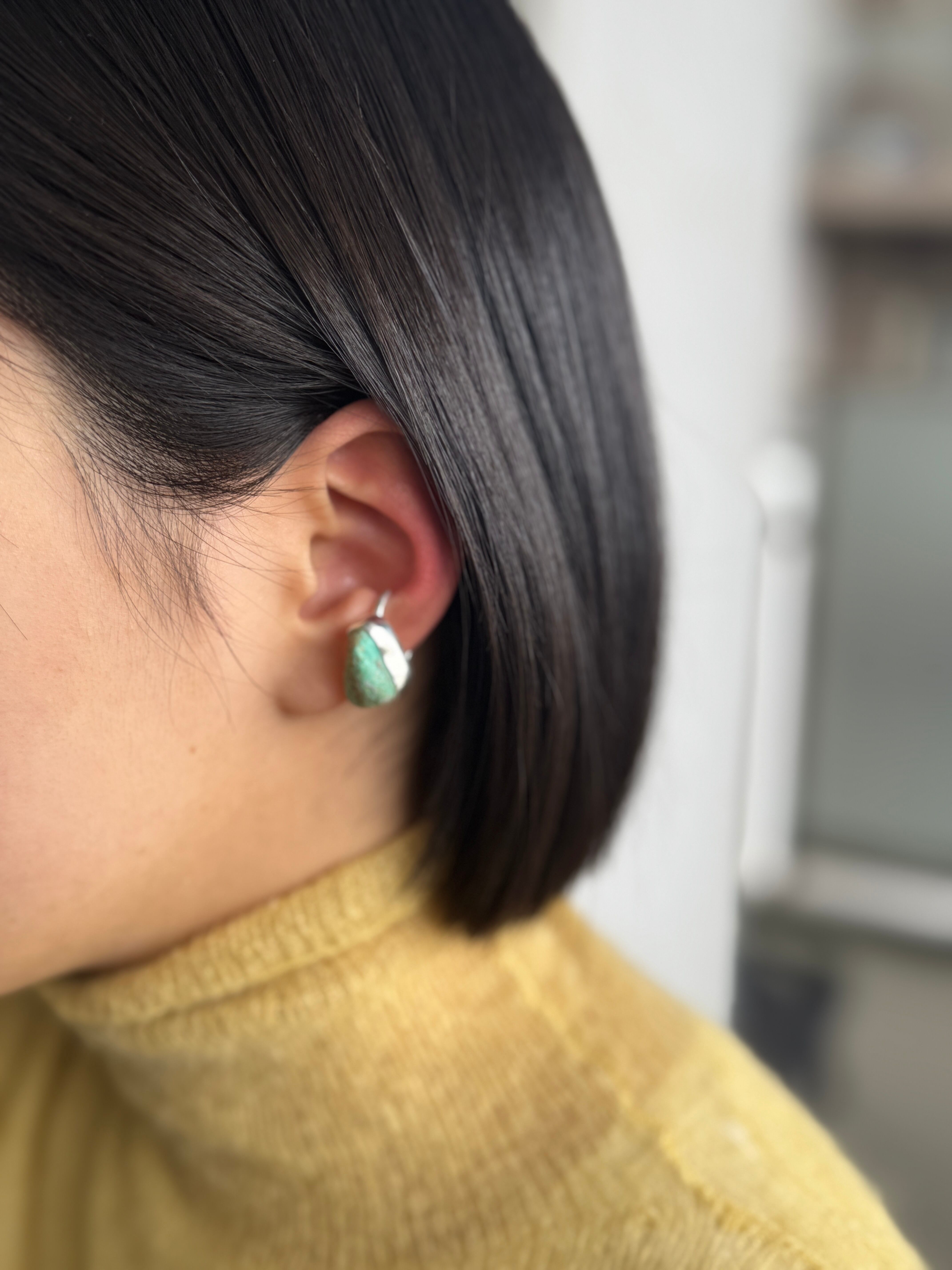 そんな原石で、ピアスのホールがなくても、男女問わずどんなファッションにも馴染む石を厳選し、着けやすく、落ちにくいイヤカフを作りました。